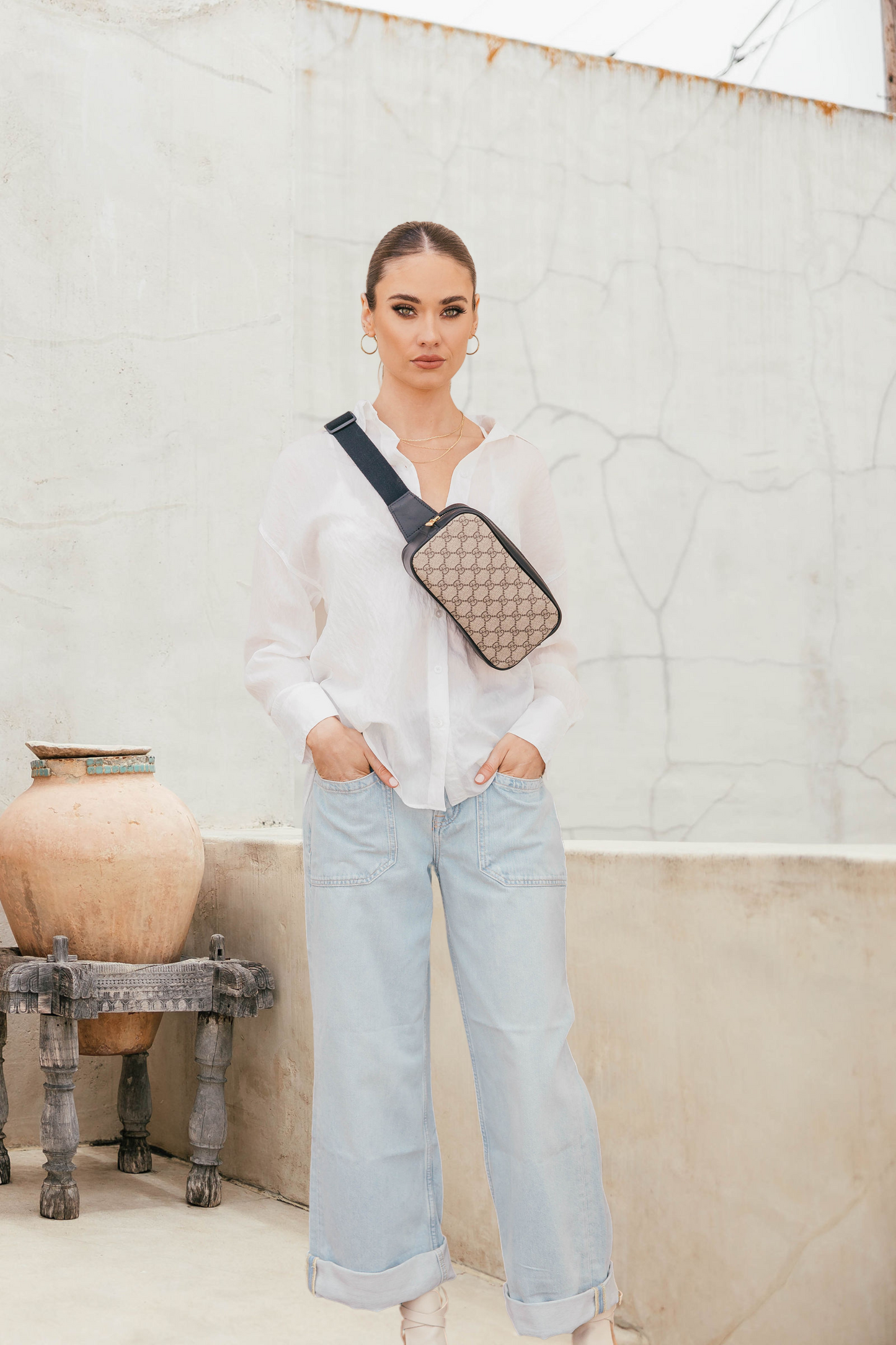 Perfect cross body size! if you want to go hands free but have a few Necessities this is the bag for you. Room for glasses, lipstick, small wallet and keys.