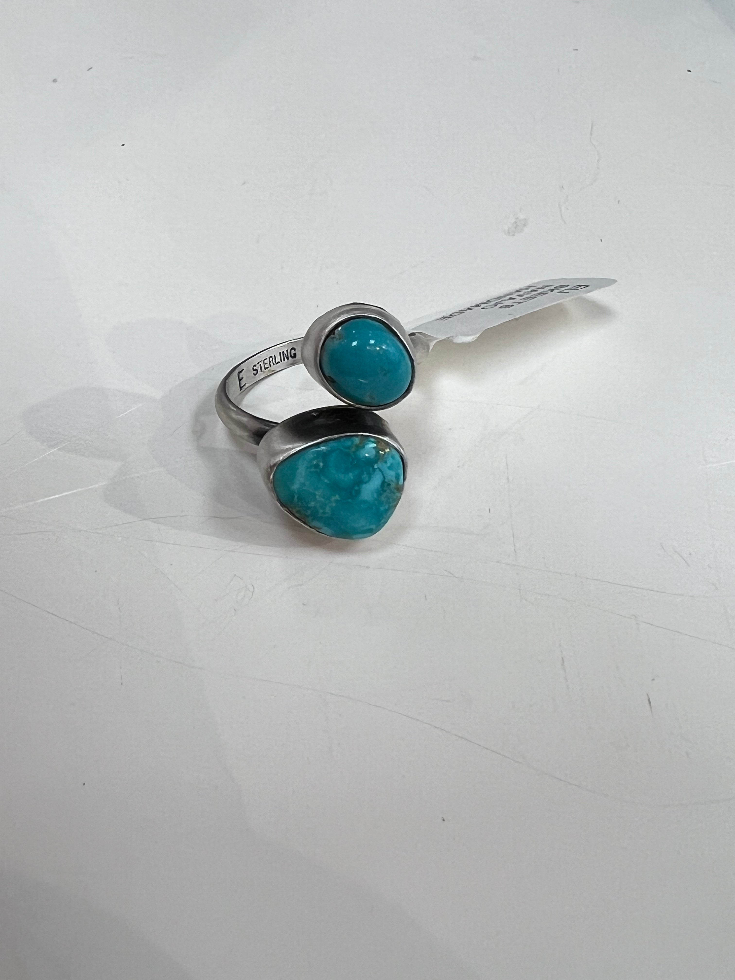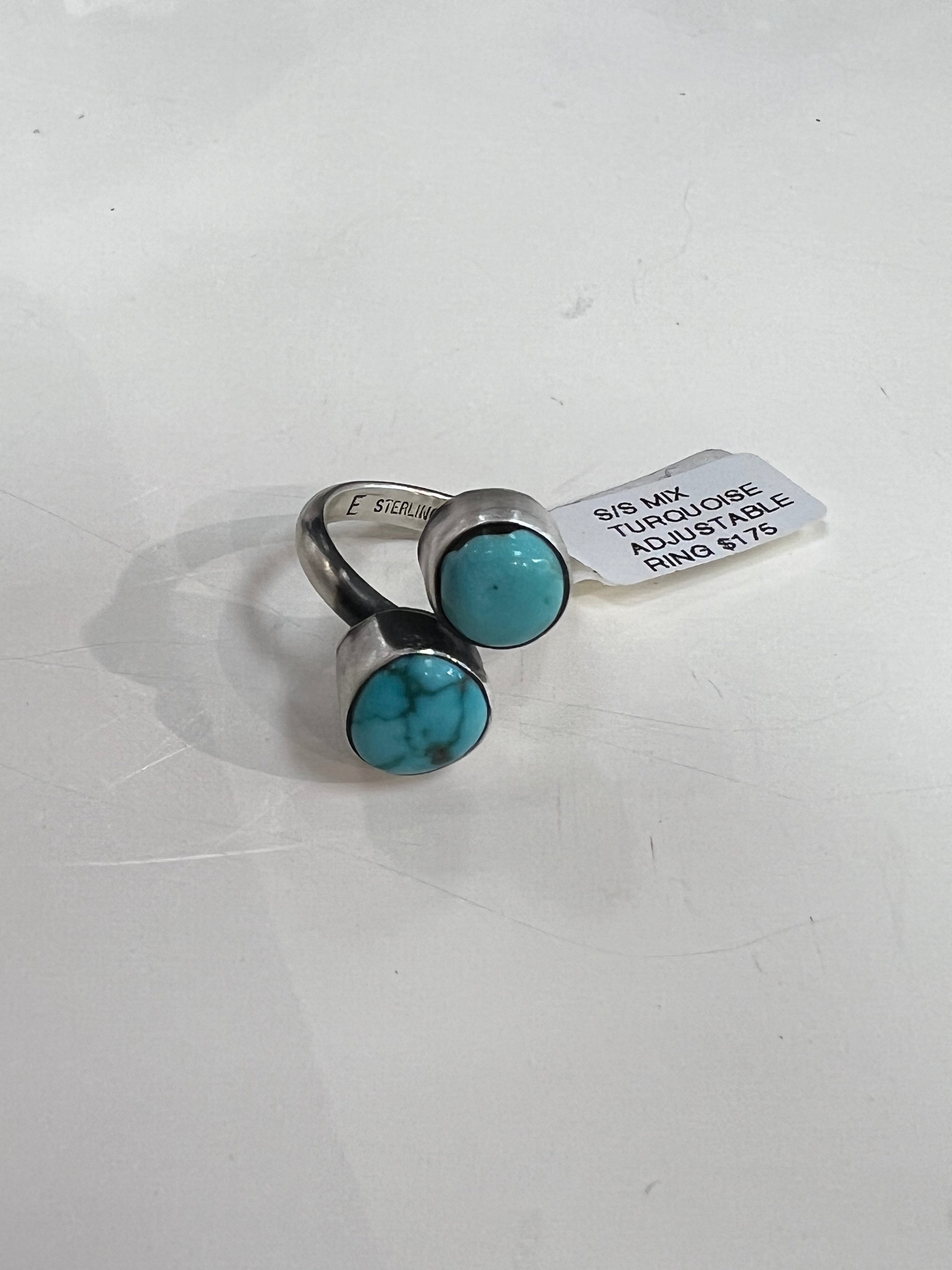 Handmade Navajo sterling silver adjustable ring with 2 small Mixed Turquoise stones.
