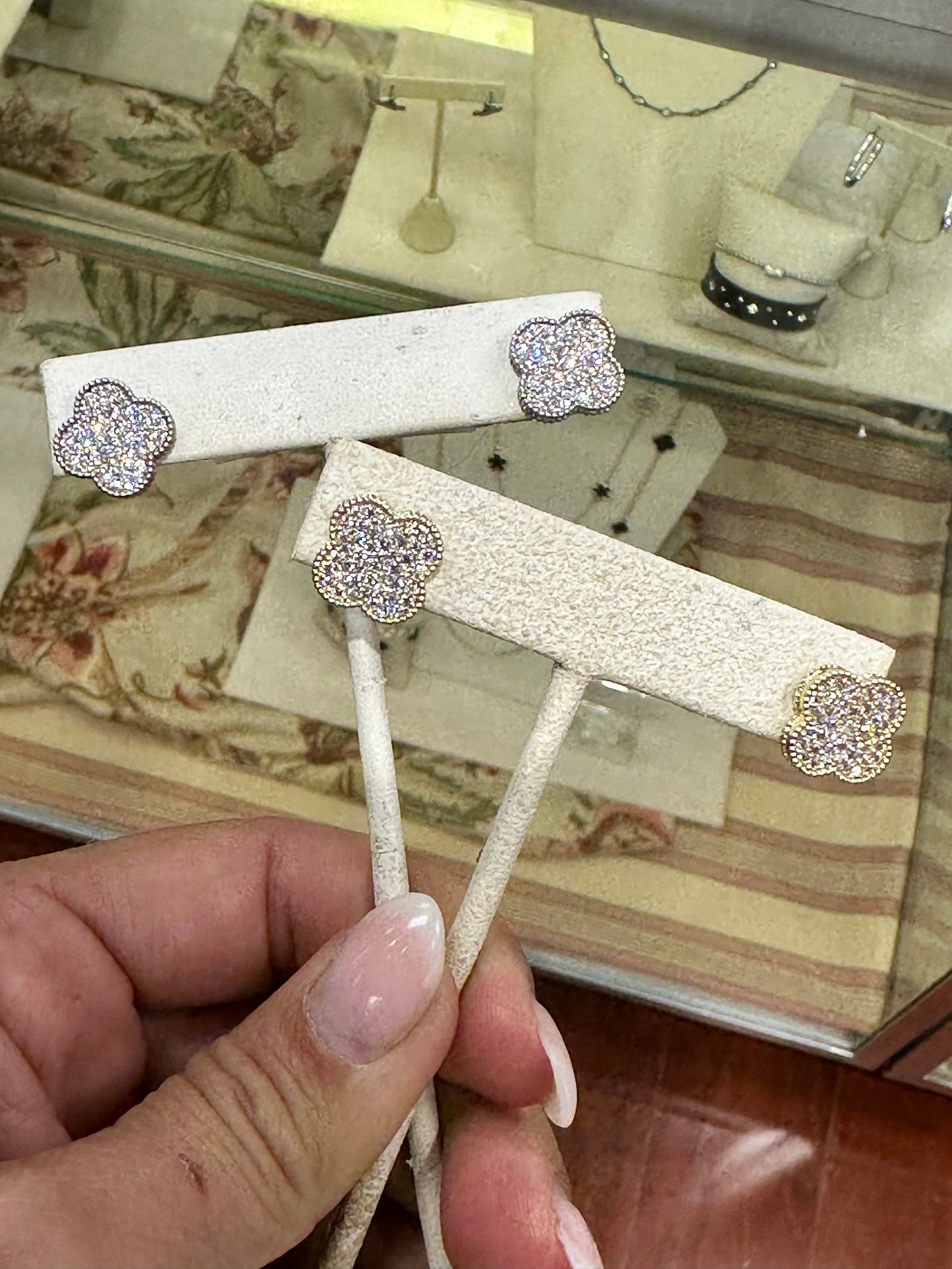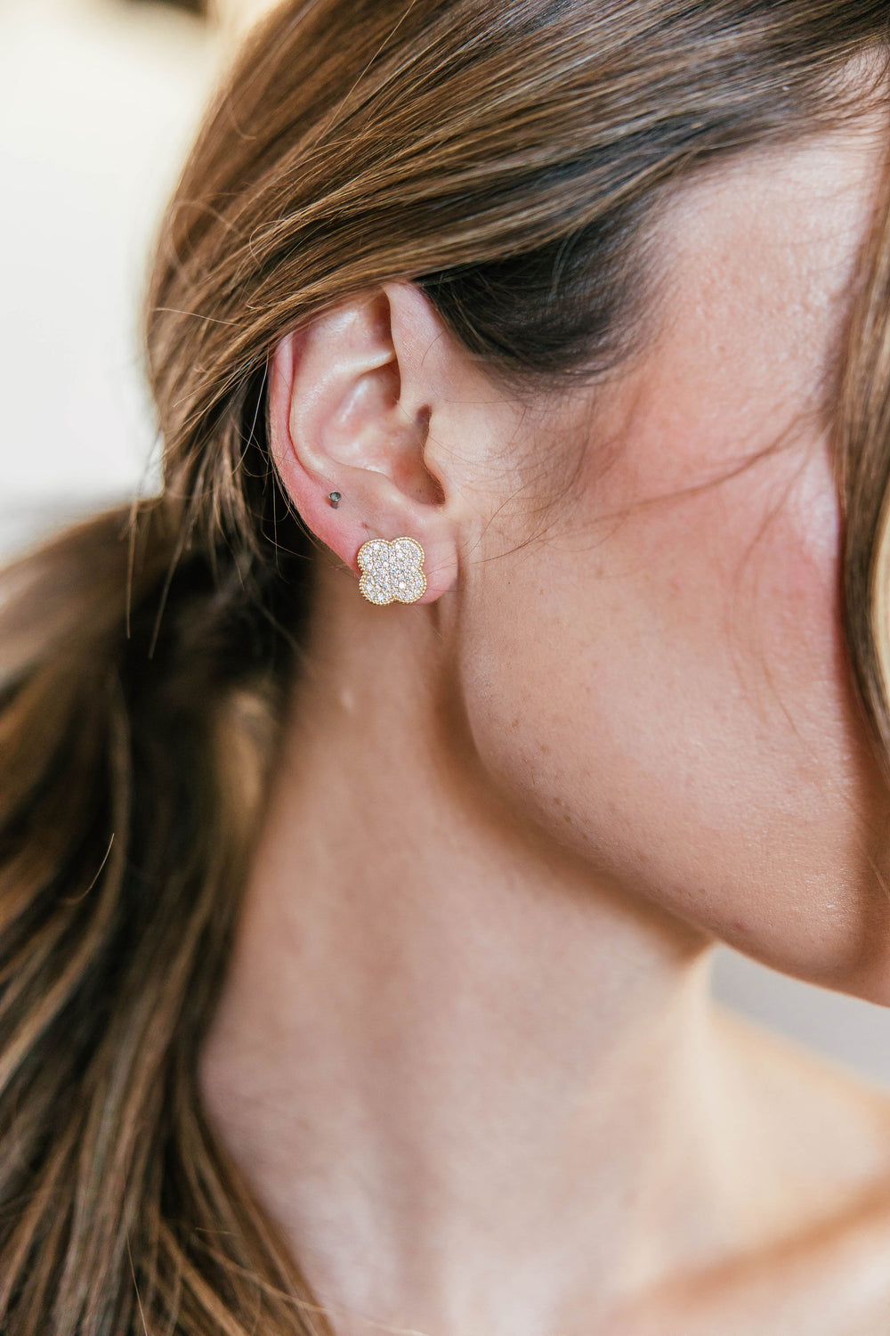 These pave clover studs are perfect for everyday wear. Their delicate design and lightweight construction make them super comfortable to wear, adding the perfect touch to any outfit. Expertly crafted with precision, these earrings are a must-have for any jewelry collection.