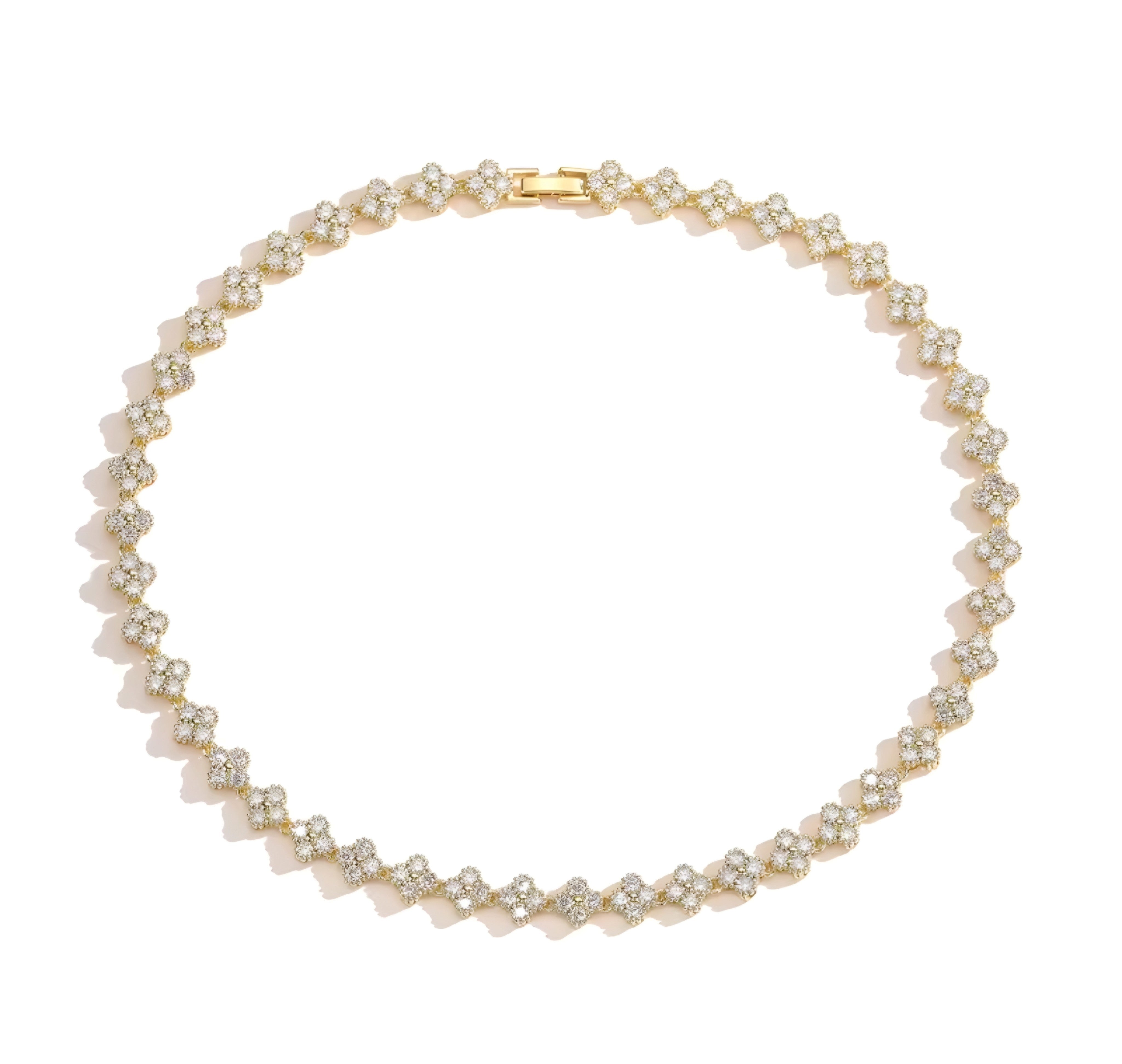 16” in length. 18k gold Pave Clover Necklace. Non-Tarnish and Water Resistant