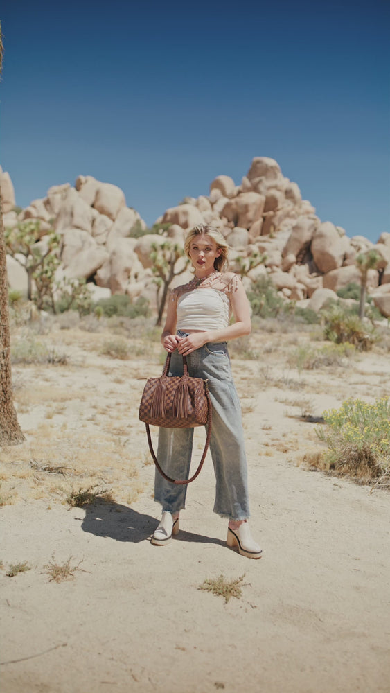 This iconic bag has an unmistakable shape and unites timeless design with our heritage details while being lightweight and very roomy. Tailor-made and hand-braided natural cowhide trim and rolled comfortable handles slip easily over the arm, with a detachable shoulder or cross body strap for the epitome of a classic made boho-chic and more comfortable.