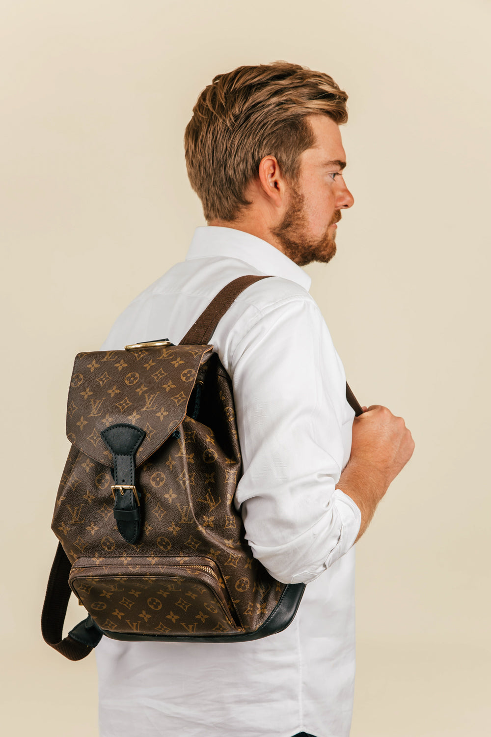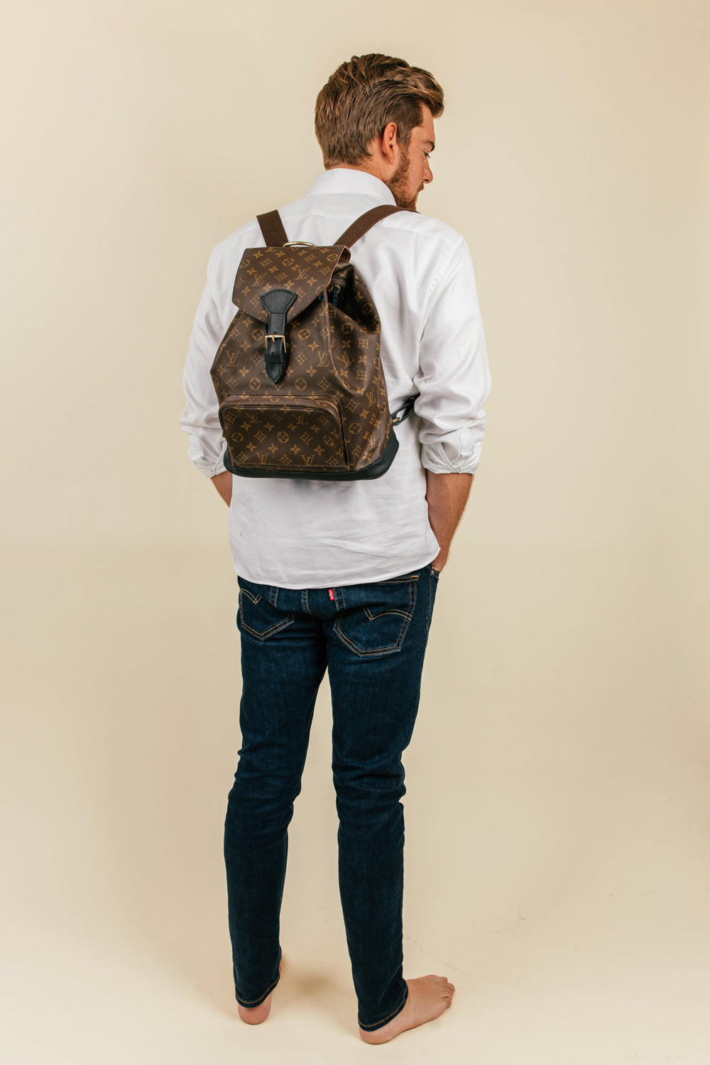 Refined detailing and sophisticated construction make the Rucksack in designer monogram with black trim a stylish choice. This bag is unisex, roomy yet lightweight, with adjustable straps that makes this backpack keep belongings organized, secure and easily accessible.