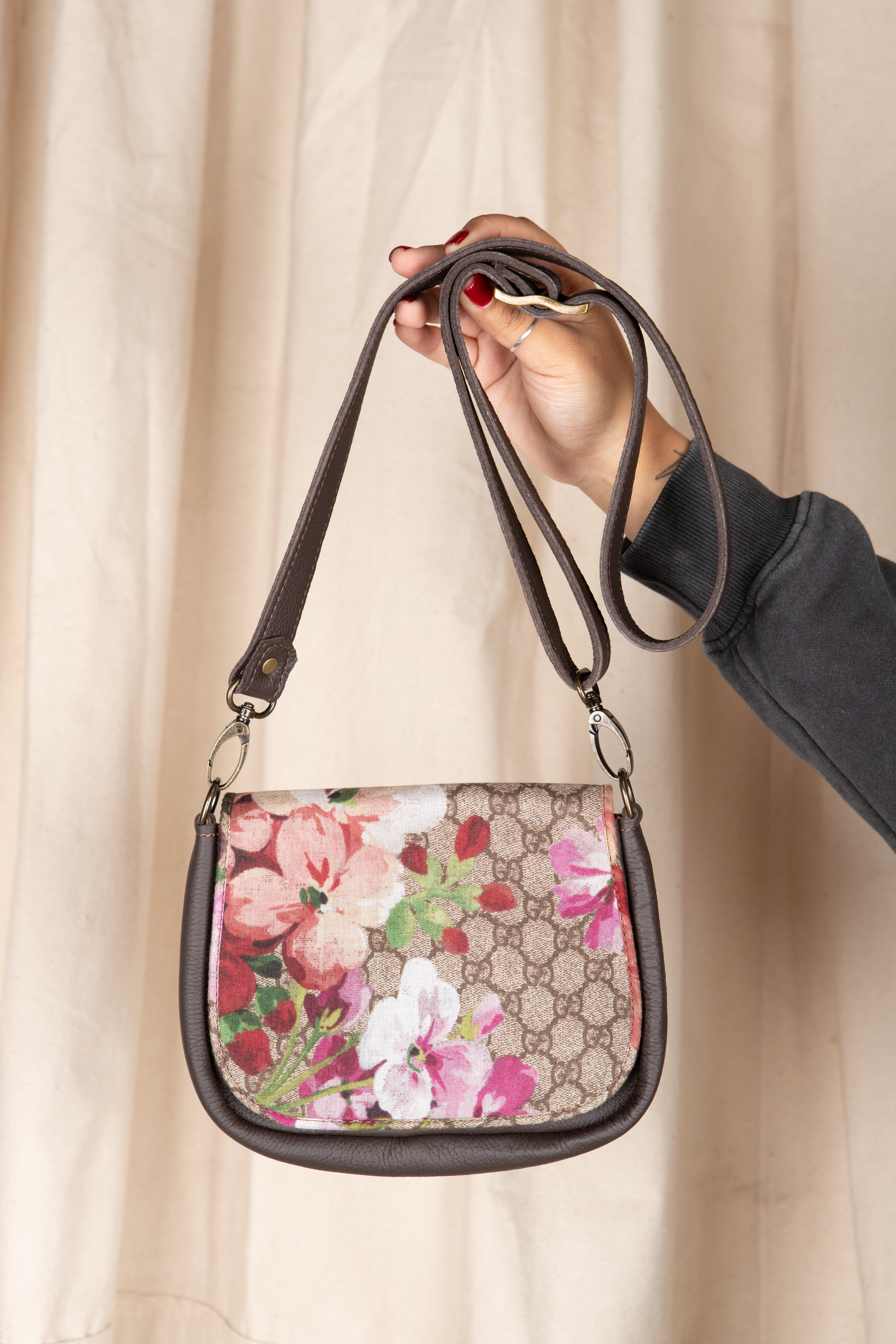 This bag is made in house. The front flap of the Odyssey is made out of 100% Authentic upcycled Gucci material. The rest of the bag is not associated with Gucci. The body of the bag is made of cowhide leather. Due to the nature of the Bag being made in house, they are all one of a kind and the placement of the GG might be slightly different.