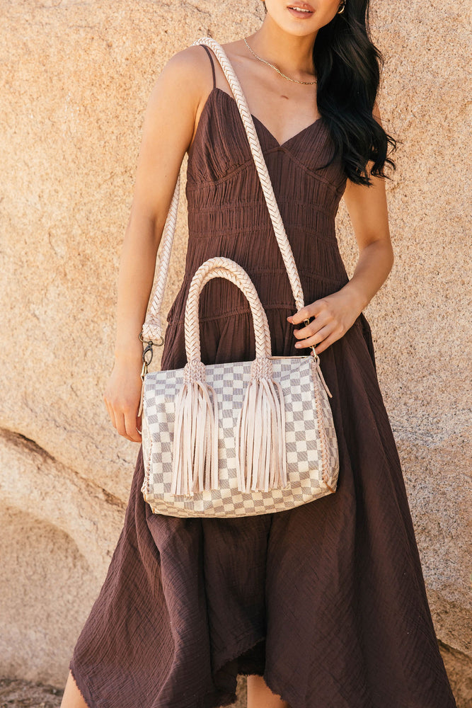 PLEASE NOTE: The leather fringe we use for bags from the Blanca Collection has no dye and untreated. This leather color starts out as a very pale cream when you get the bag. This pale cream color will slowly transition to a light to medium peach tone with daily use and sun exposure.