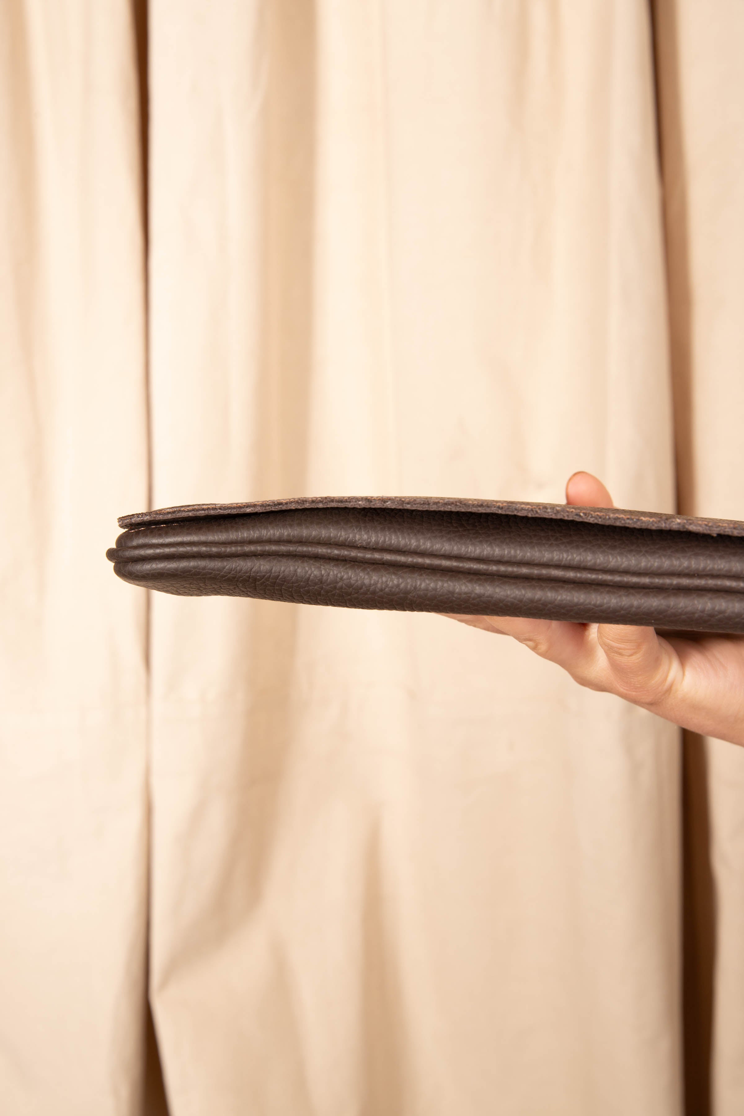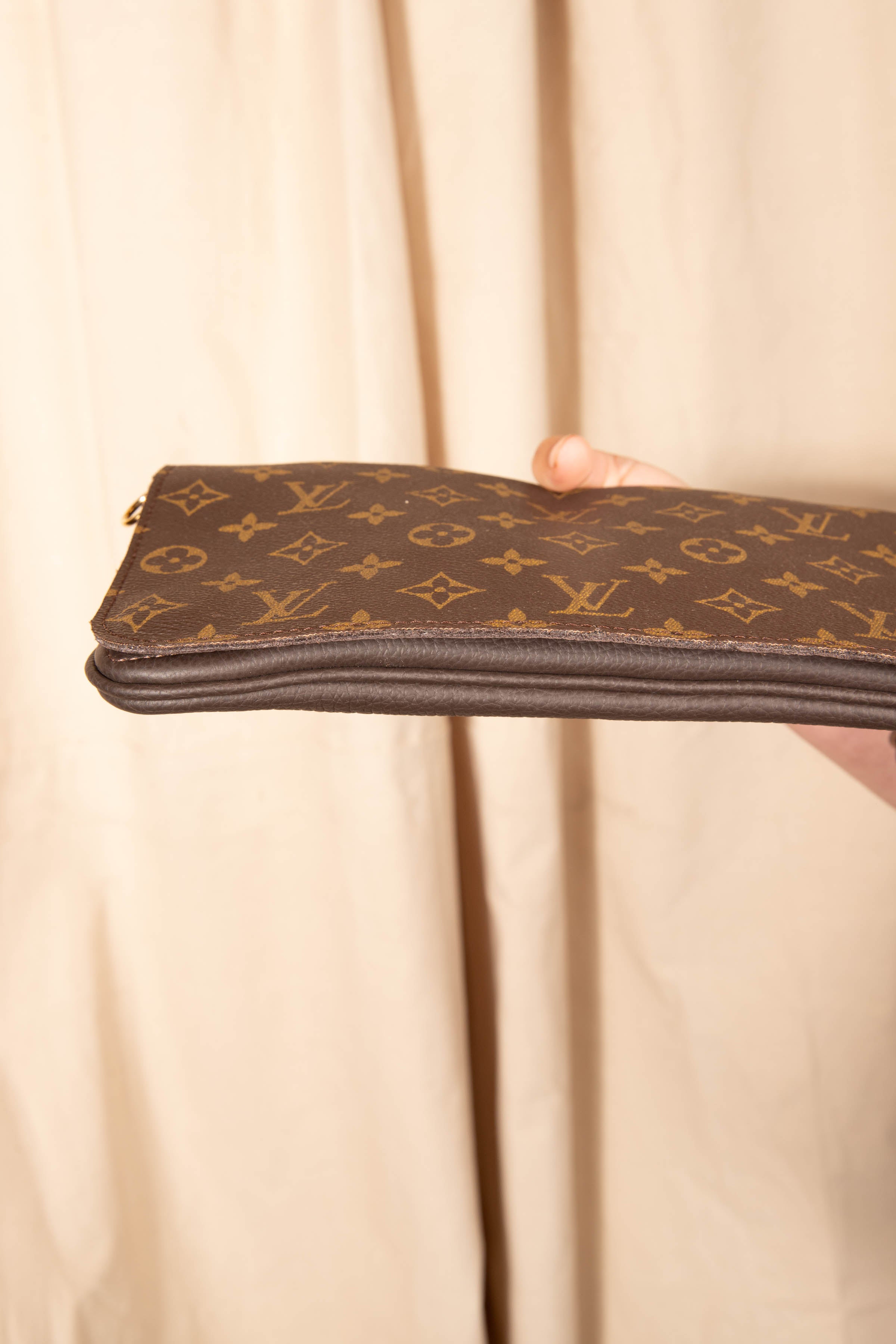 This bag is made in house. The front flap of the Cruise Clutch is made out of 100% Authentic upcycled Louis Vuitton material. The rest of the bag is not associated with Louis Vuitton. The body of the bag is made of cowhide leather. Due to the nature of the Bag being made in house, they are all one of a kind and the placement of the LV might be slightly different.
