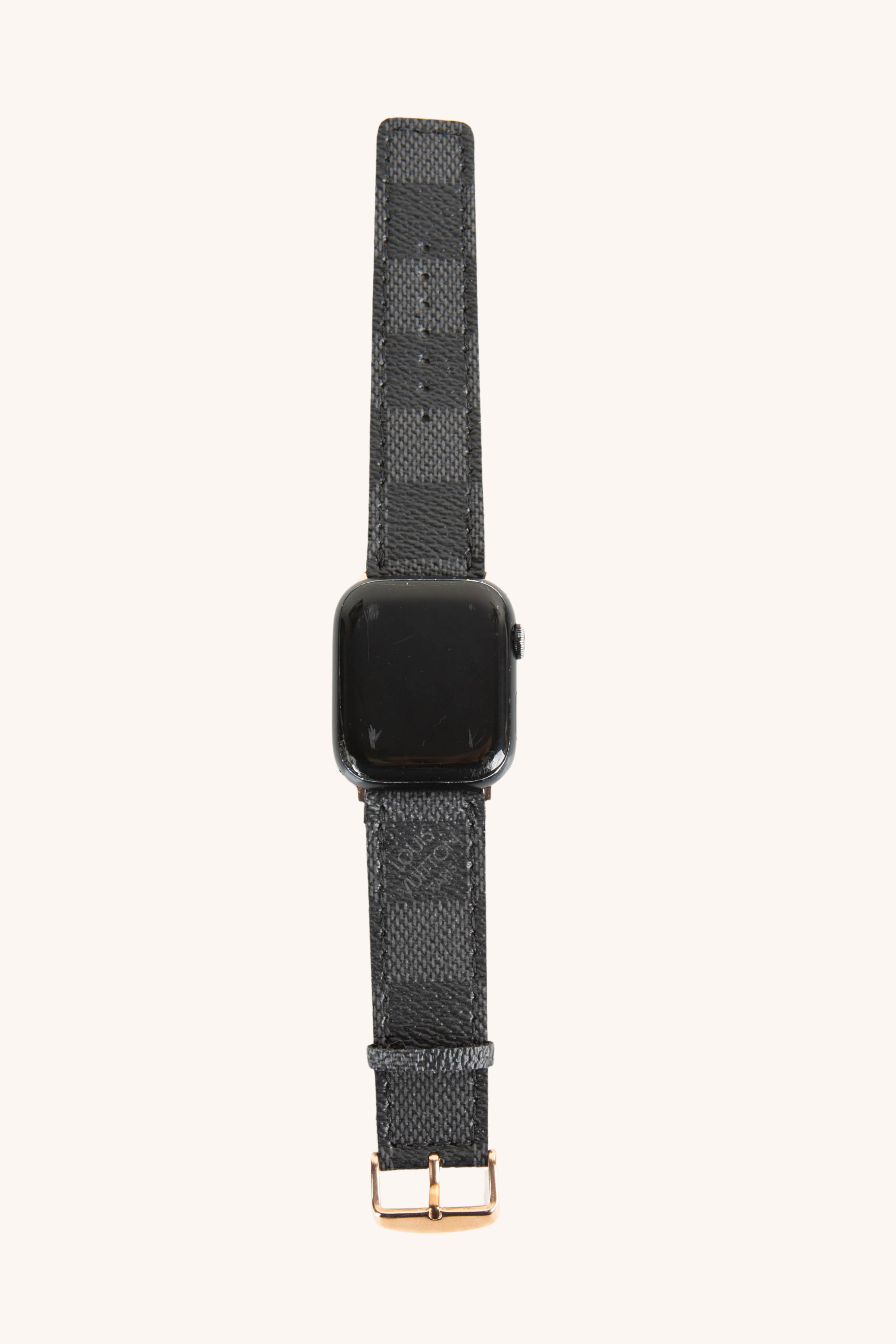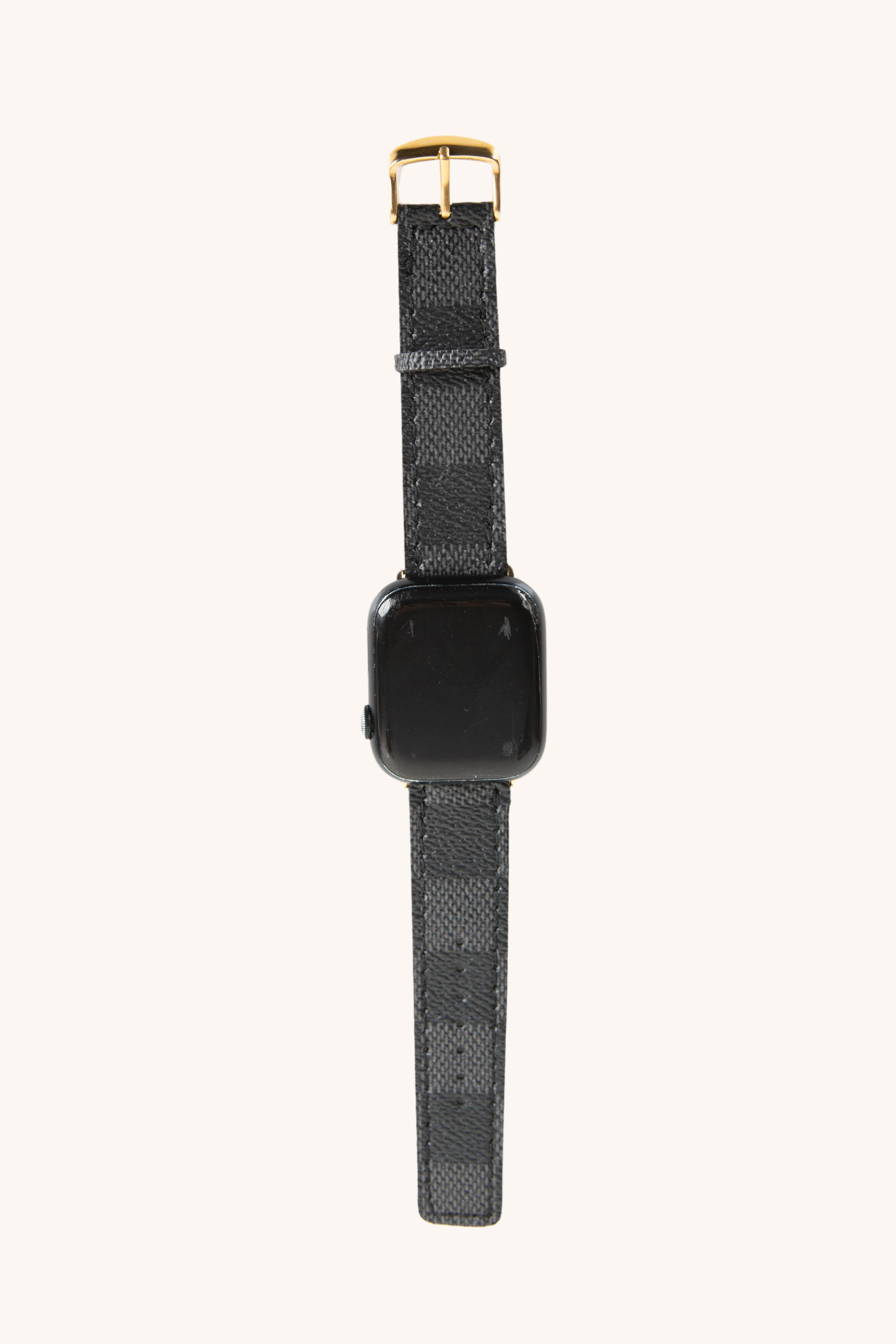 An elegant fusion of authentic Louis Vuitton Noir Damier material and durable leather backing. Available in small (38-41mm) and large (42-45mm) adaptors to fit your current Apple Watch. The band fits wrists from 5.5 to 7 inches which covers almost everyone. Choose from black, gold, rose gold, or silver hardware. Choose between one LV Noir Damier logo, or just the Noir Damier Checkered Pattern. Elevate your Apple Watch with luxury and style!