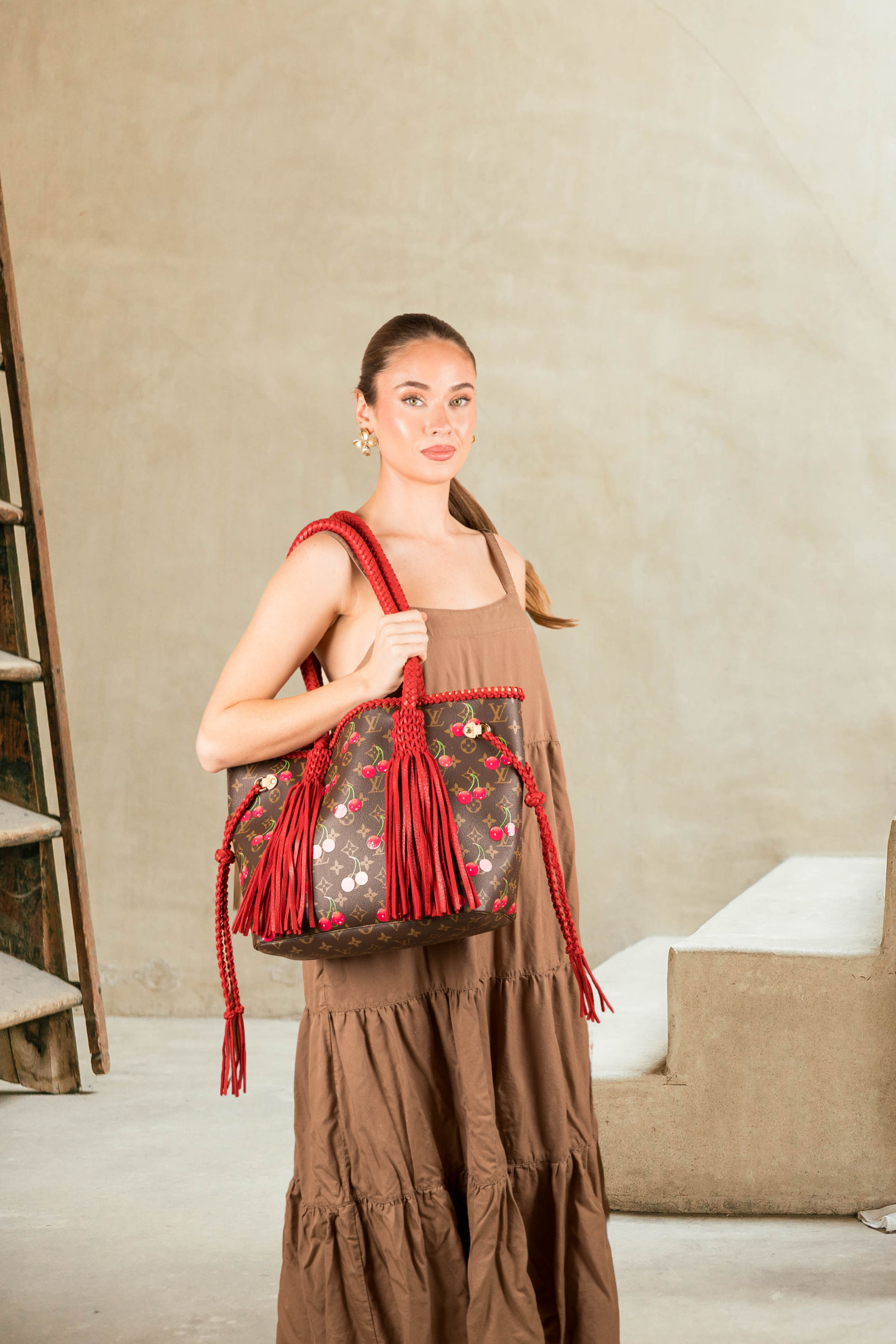 We added our signature hand-braided leather handles, blending high-end art with everyday functionality. The cheerful cherry motif, set against the classic Monogram canvas, makes this bag a rare find — and the braided upgrade ensures it stands out even more.