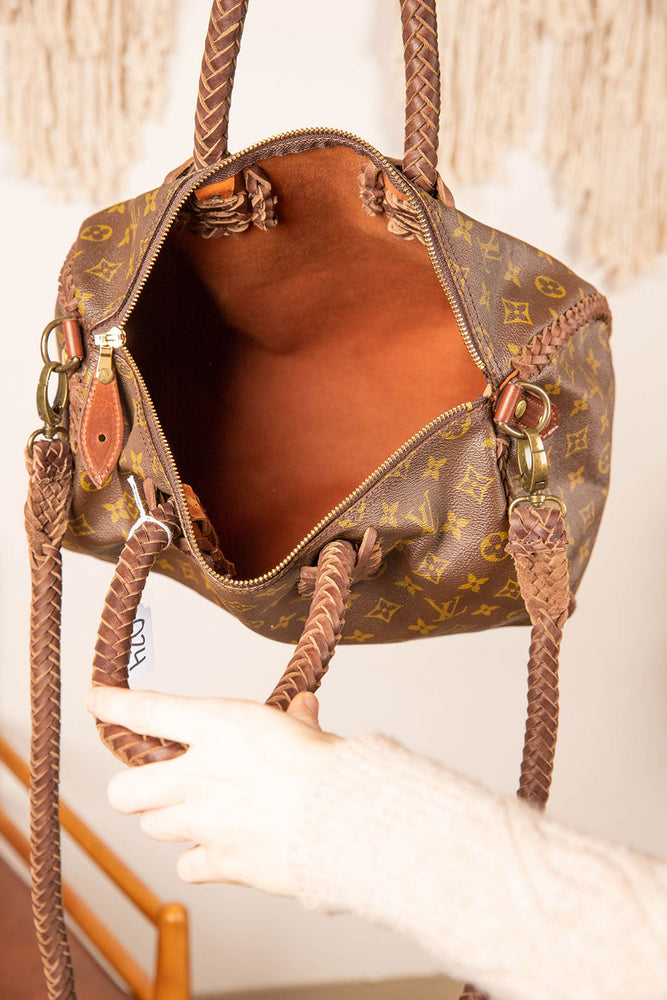 This is an authentic Iconic Louis Vuitton bag. It is an elegant compact bag that is extremely roomy inside with 1 zippered pocket. If you carry a lot of stuff, this is the perfect bag for you. Measuring 13.8 x 9.1 x 7.1 inches. All bags are authenticated, lovingly cleaned, restored and enhanced with our beautiful leather braided straps by hand here in the United States!