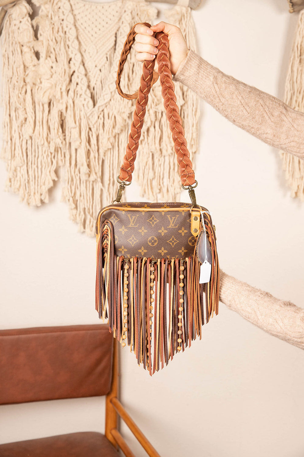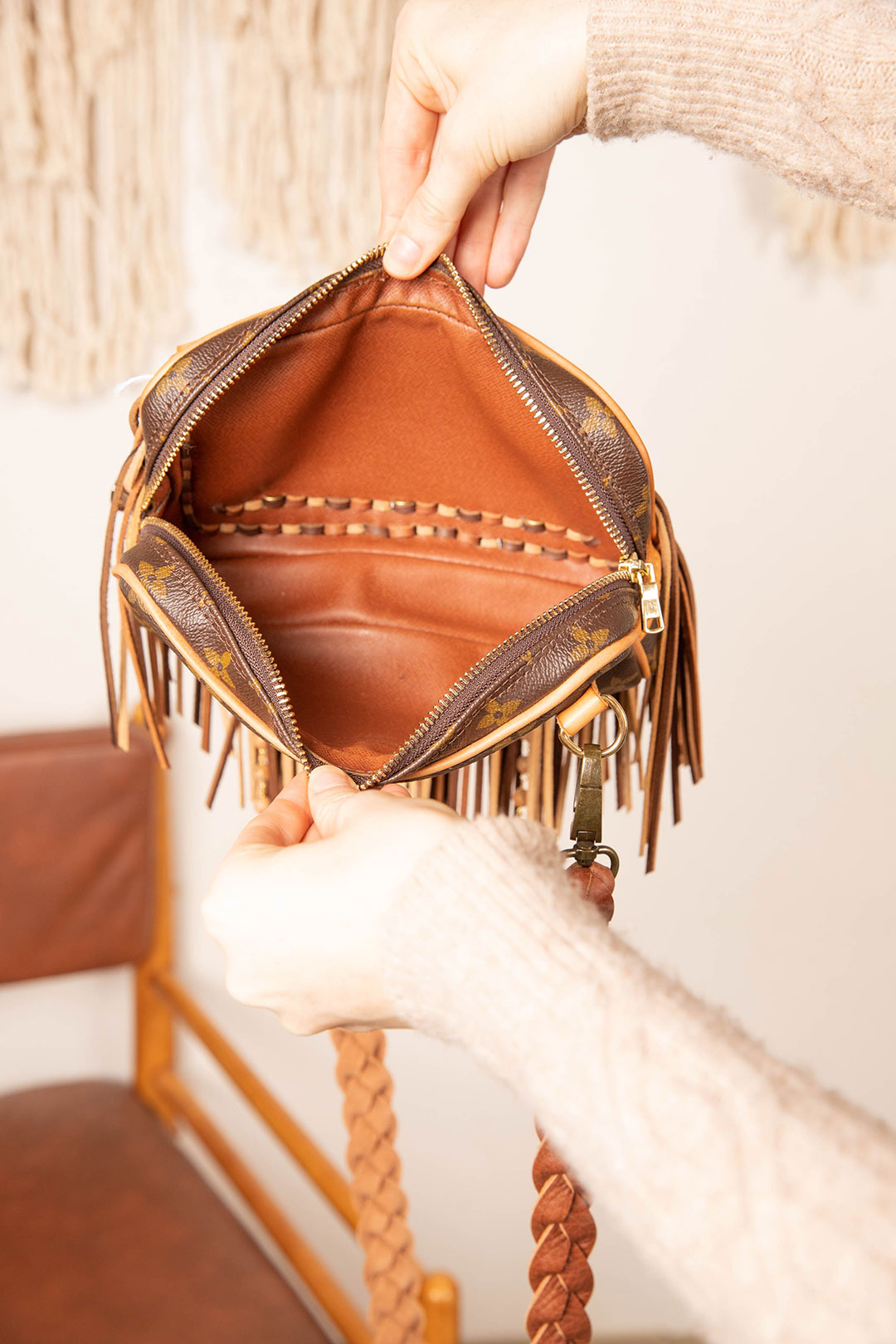 This is an authentic Louis Vuitton cross body bag, measuring 9 x 5.5 x 2 inches. It has a zippered main compartment for easy cellphone access. Extremely spacious to carry all your essentials. All bags are authenticated, lovingly cleaned, restored and enhanced with our beautiful leather fringe and/or braiding by hand here in the United States!