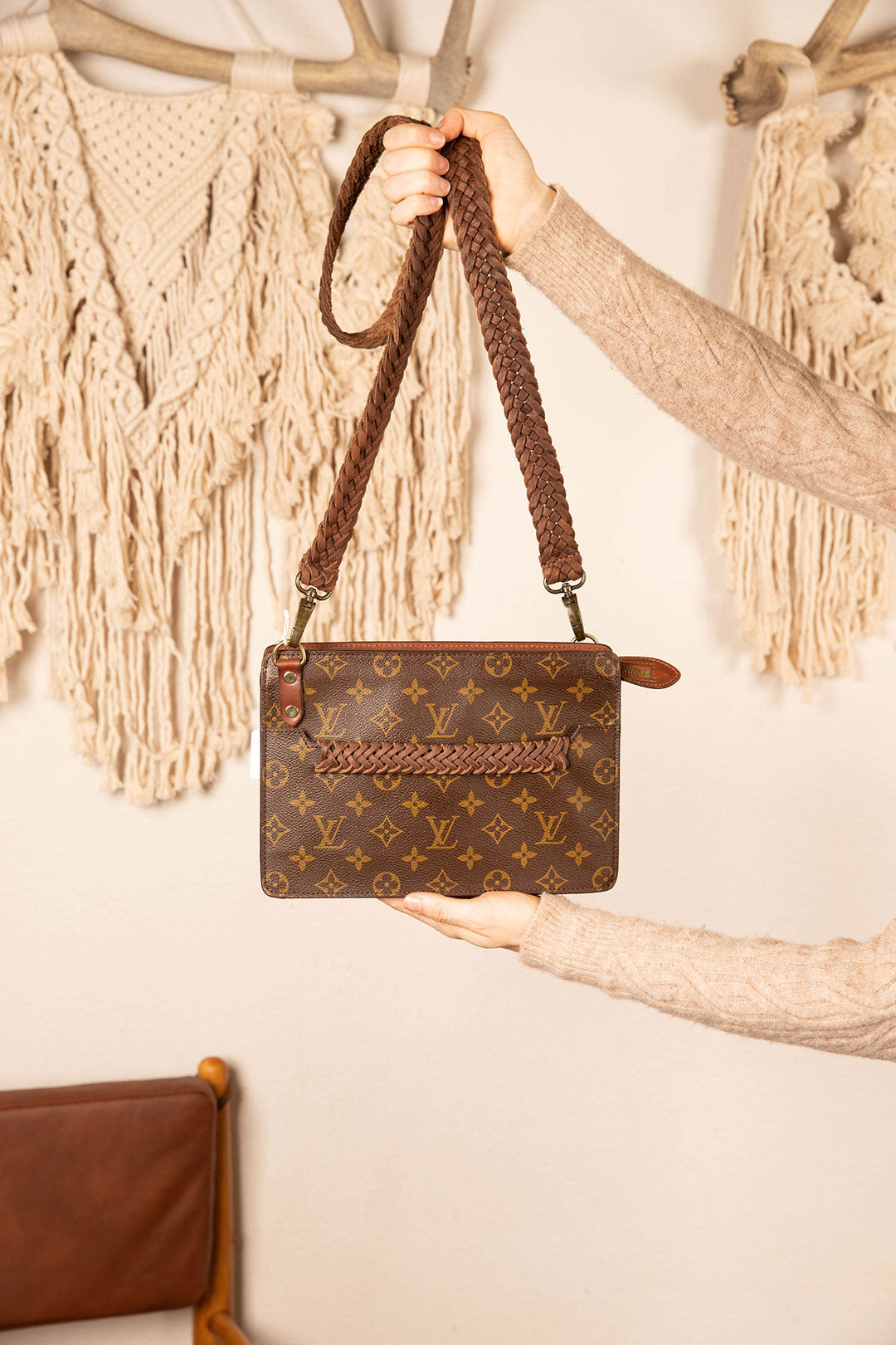 This is an authentic Louis Vuitton bag and arguably the hardest to find collectible piece. It has a zippered top closure, measuring 10 x 2.25 x 7 inches. It is a very popular streetwear bag for daily use and will fit your basic essentials. All bags are authenticated, lovingly cleaned, restored and enhanced with our beautiful leather braided straps by hand here in the United States!