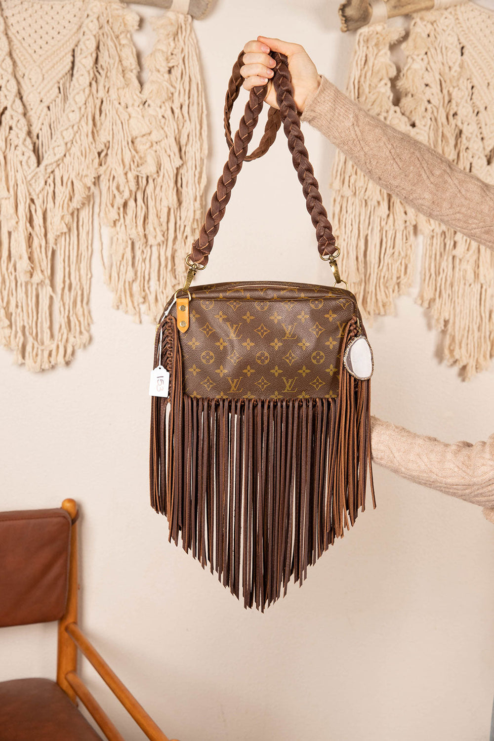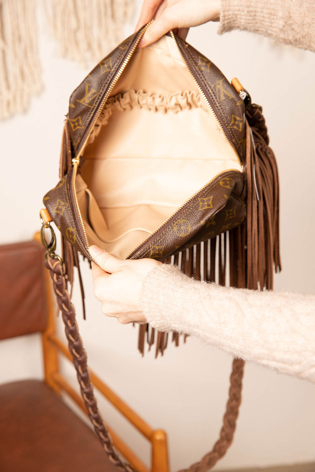 This is a beautiful and practical vintage monogram Louis Vuitton crossbody bag with our signature fringe and braided leather cross body strap. It will be your go to everyday bag to carry your daily essentials, no matter what outfit you wear. The bag measures at 11 x 6.5 x 3 inches with an internal open flap pocket and a zipper closure to protect your valuables.