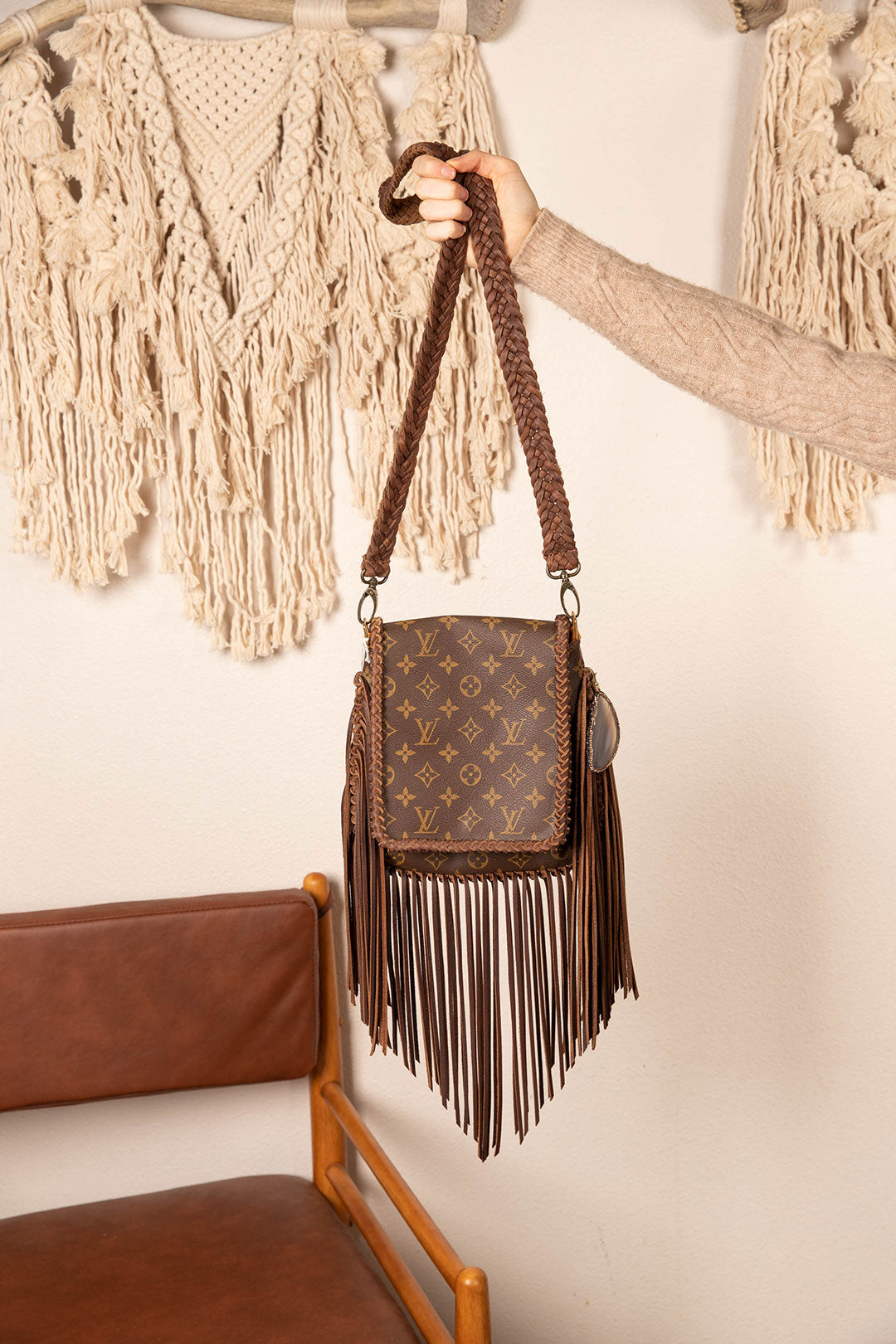 This is an authentic Louis Vuitton crossbody. This chic thin profile cross body bag allows you to carry all your essentials, measuring 10 x 2 x 7.75 inches. All bags are authenticated, lovingly cleaned, restored and enhanced with our beautiful leather fringe and braiding by hand here in the United States!