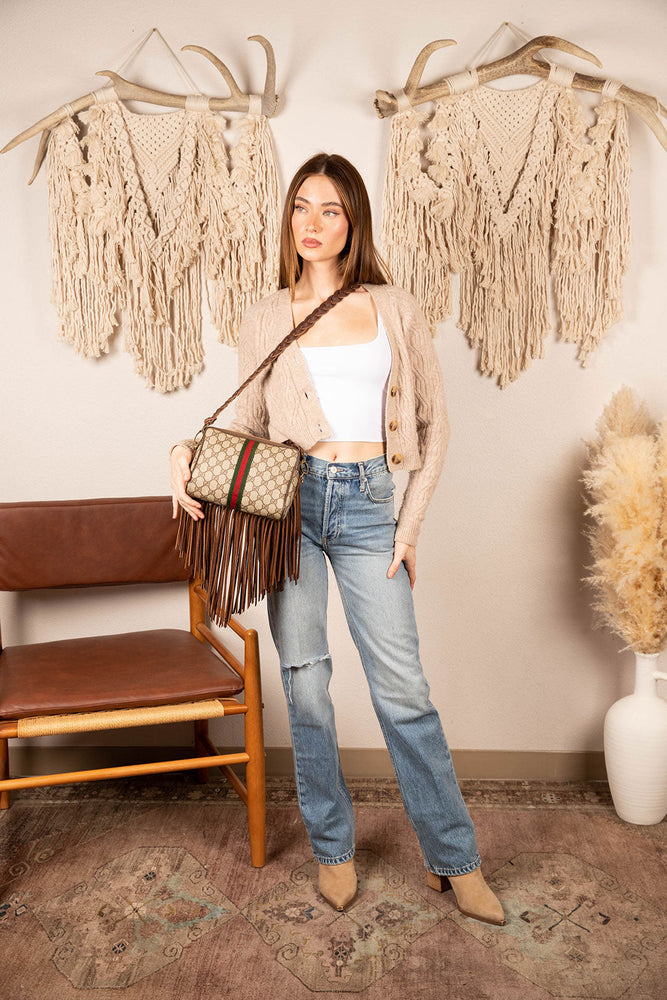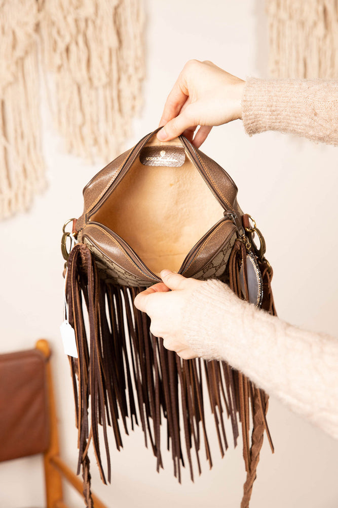 This is an Authentic Gucci bag. This is a great everyday bag that can fit all your essentials, it has a zipperd top and a small pocket in the inside to keep you organized. This bag measures 8.7 x 5.9 x 2.4 All bags are authenticated, lovingly cleaned, restored and enhanced with our beautiful premium leather here in the United States!