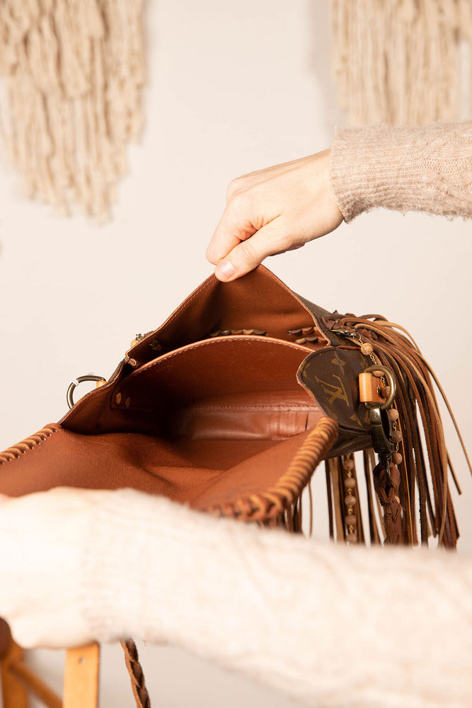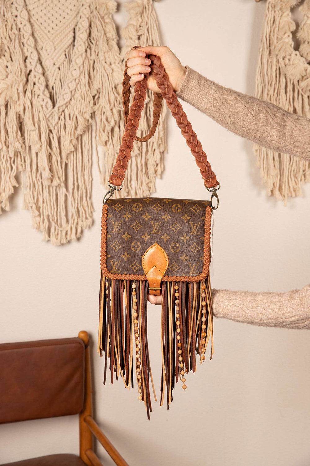 This is an authentic Iconic Louis Vuitton bag, measuring 8 x 7 x 2.9 inches structured cross body bag with front buckle closure. It is distinctly shaped with a spacious inside to carry all basic essentials. All bags are authenticated, lovingly cleaned, restored and enhanced with our beautiful leather fringe and/or braiding by hand here in the United States!