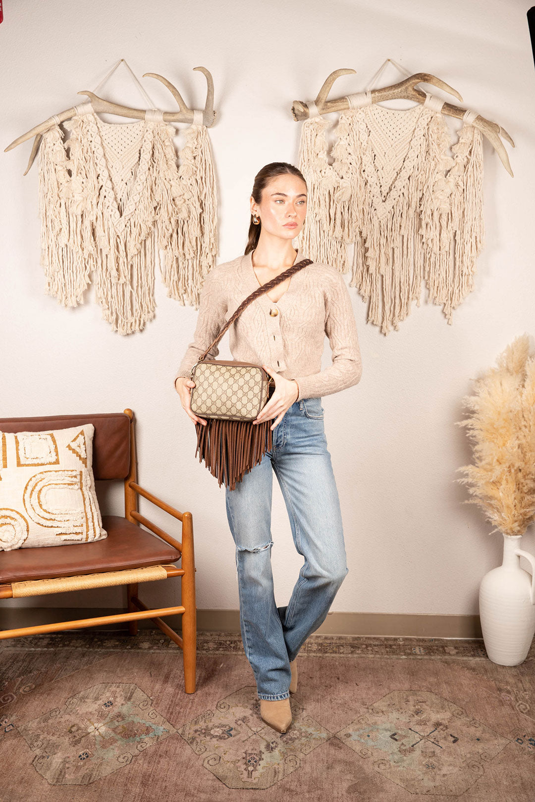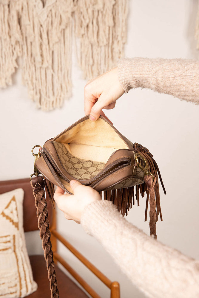 This is an Authentic Gucci bag. This is a great everyday bag that can fit all your essentials, it has a zipperd top and a small pocket in the inside to keep you organized. This bag measures 8.6 x 6 x 2 All bags are authenticated, lovingly cleaned, restored and enhanced with our beautiful premium leather here in the United States!