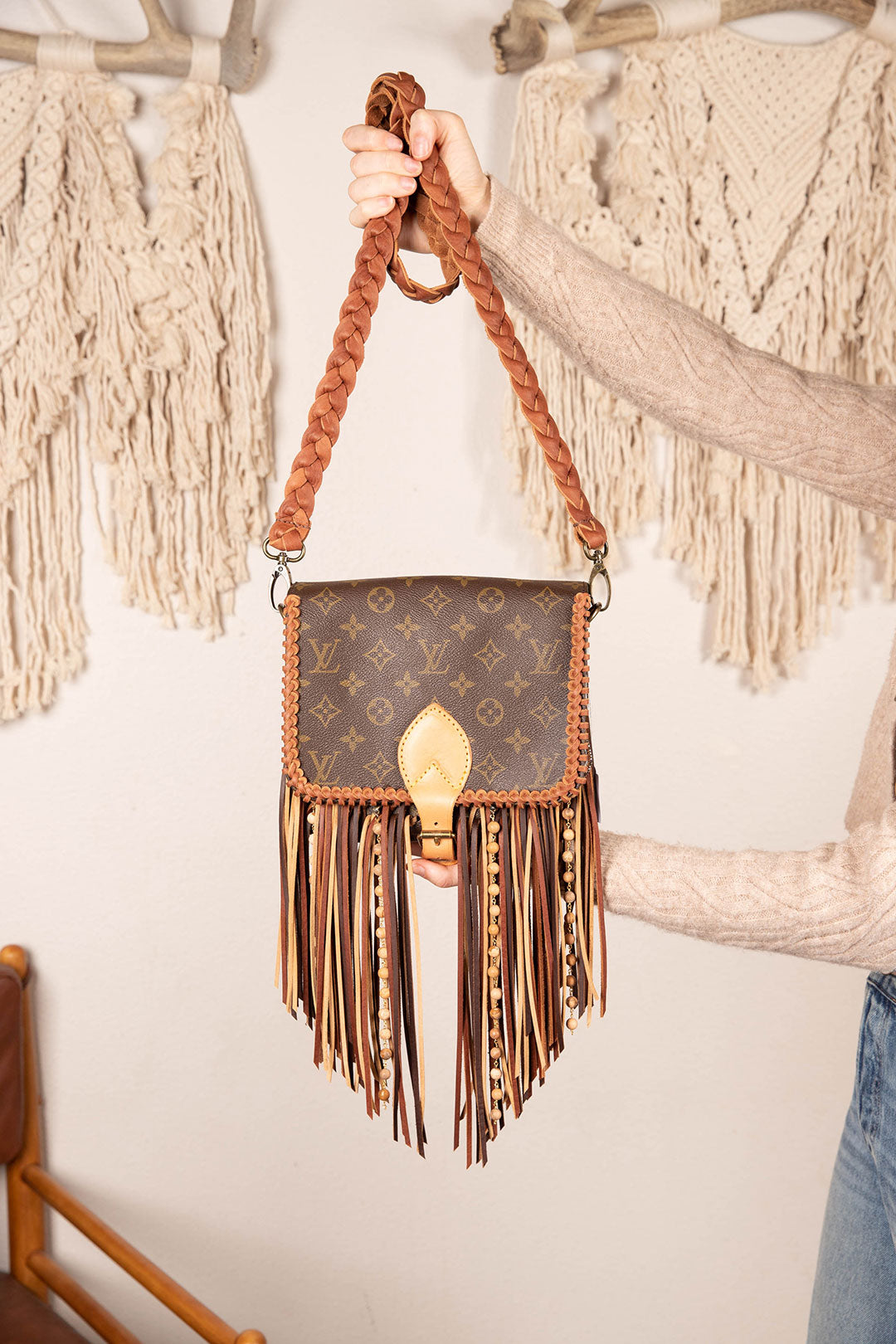 This is an authentic Iconic Louis Vuitton bag, measuring 8 x 7 x 2.9 inches structured cross body bag with front buckle closure. It is distinctly shaped with a spacious inside to carry all basic essentials. All bags are authenticated, lovingly cleaned, restored and enhanced with our beautiful leather fringe and/or braiding by hand here in the United States!