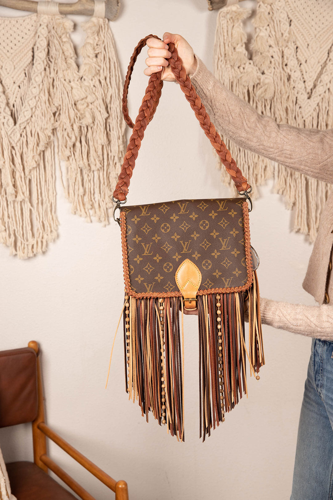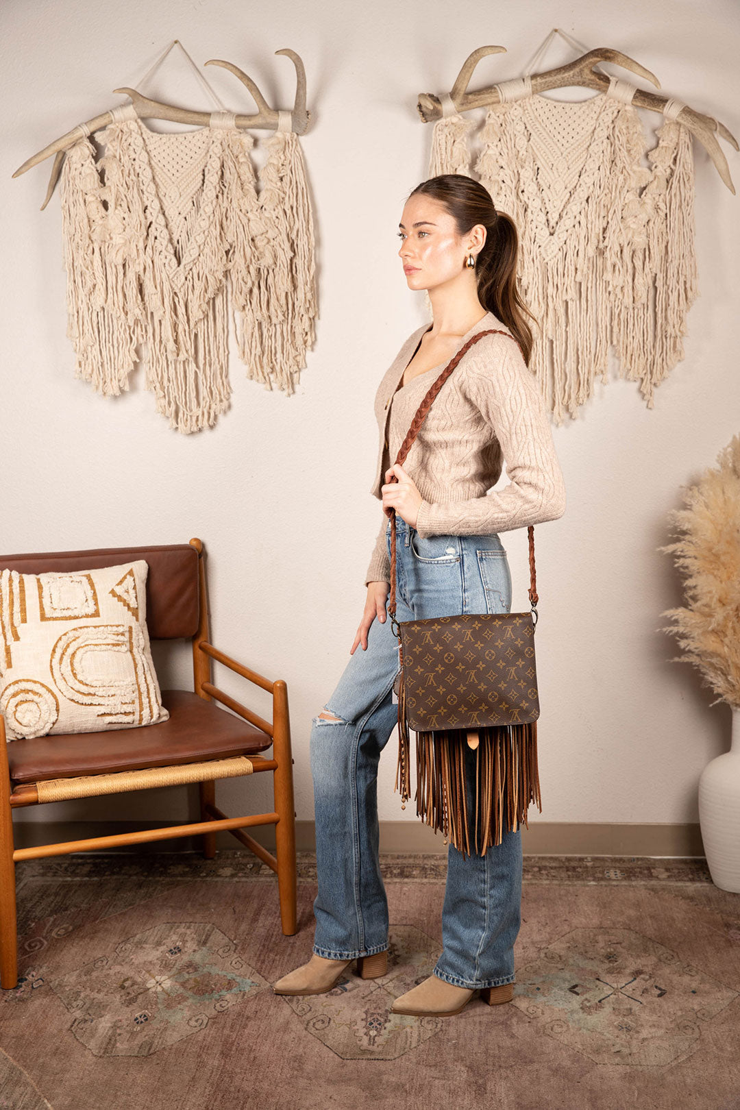 This is an authentic Iconic Louis Vuitton bag measuring 10 x 8 x 3 inches structured cross body bag with front buckle closure. It is distinctly shaped with a spacious inside to carry all basic essentials. All bags are authenticated, lovingly cleaned, restored and enhanced with our beautiful leather fringe and/or braiding by hand here in the United States!
