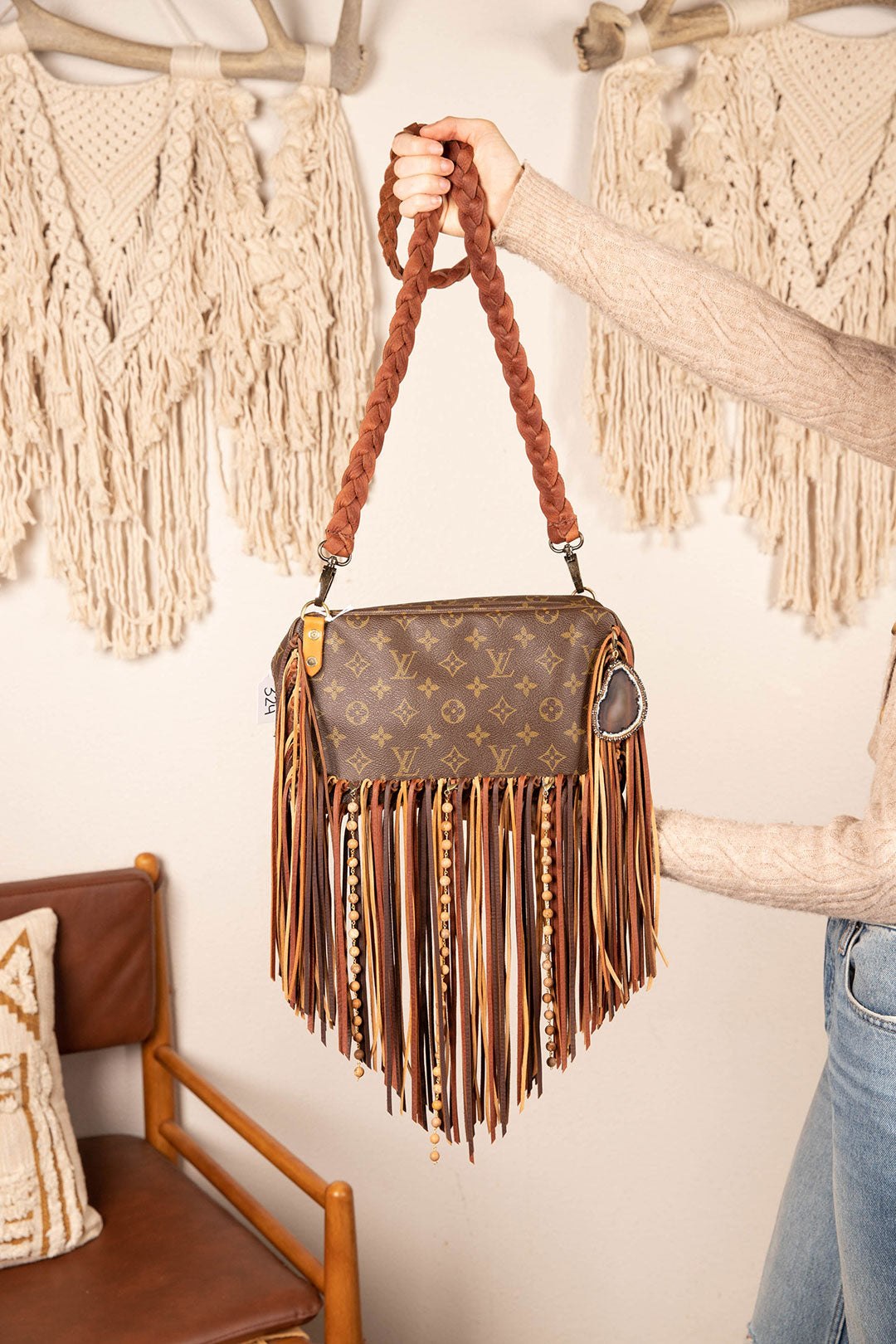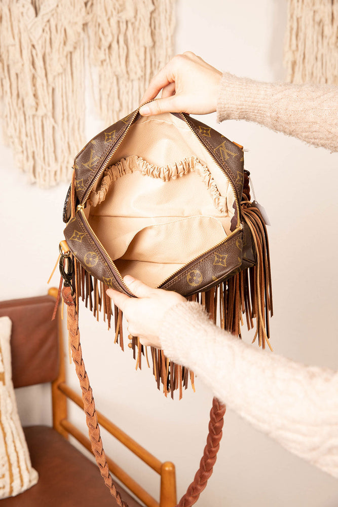 This is a beautiful and practical vintage monogram Louis Vuitton crossbody bag with our signature fringe and braided leather cross body strap. It will be your go to everyday bag to carry your daily essentials, no matter what outfit you wear. The bag measures at 11 x 6.5 x 3 inches with an internal open flap pocket and a zipper closure to protect your valuables.