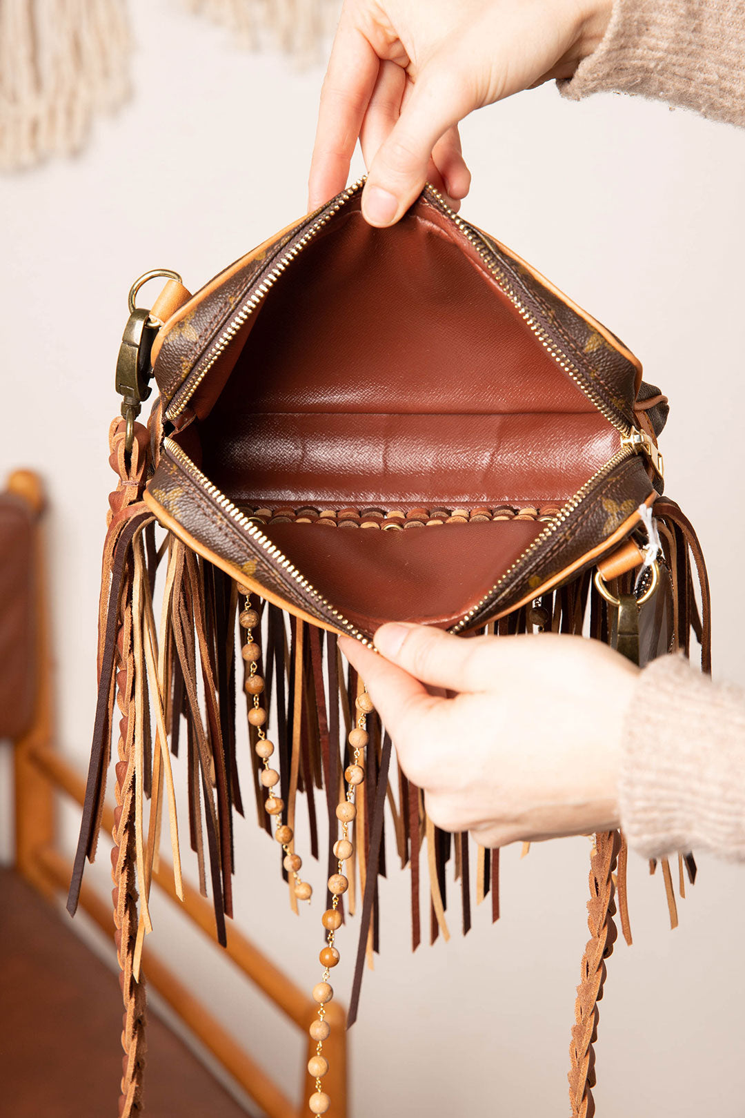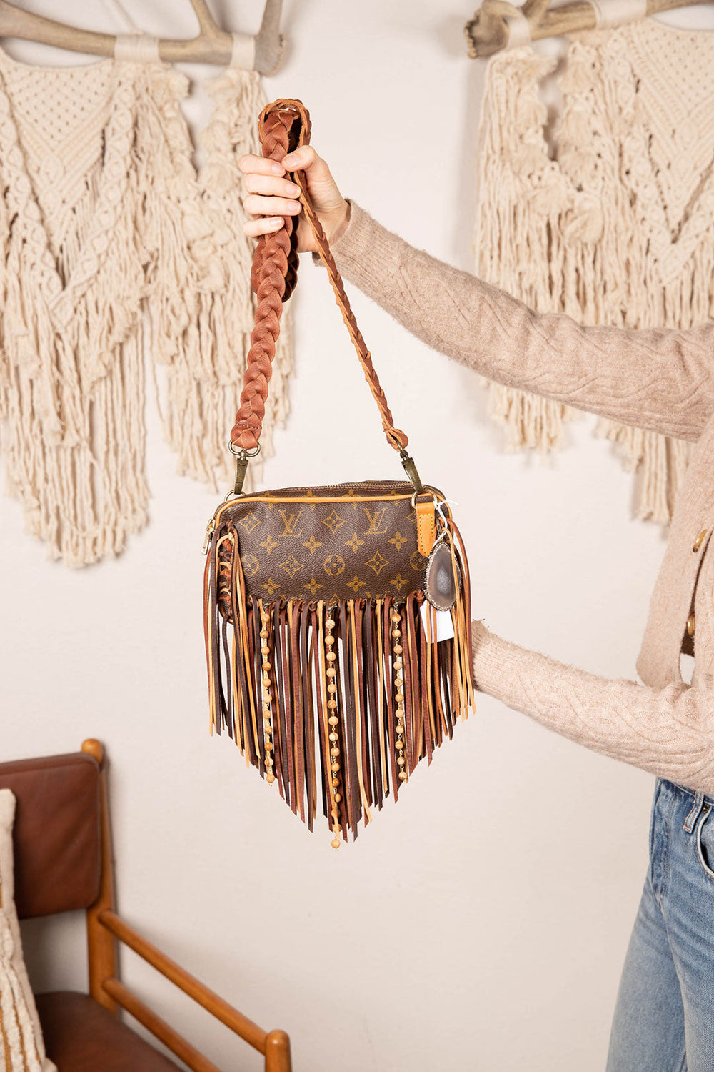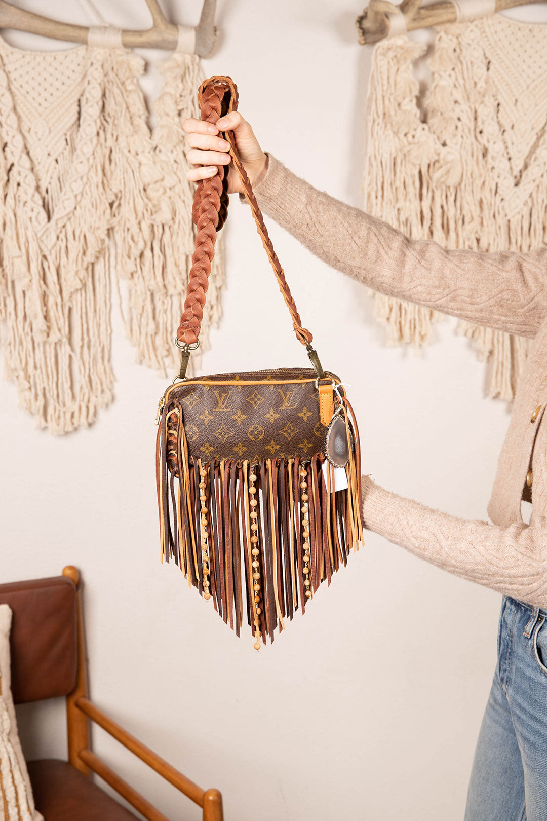 This is an authentic Louis Vuitton cross body bag, measuring 9 x 5.5 x 2 inches. It has a zippered main compartment for easy cellphone access. Extremely spacious to carry all your essentials. All bags are authenticated, lovingly cleaned, restored and enhanced with our beautiful leather fringe and/or braiding by hand here in the United States!
