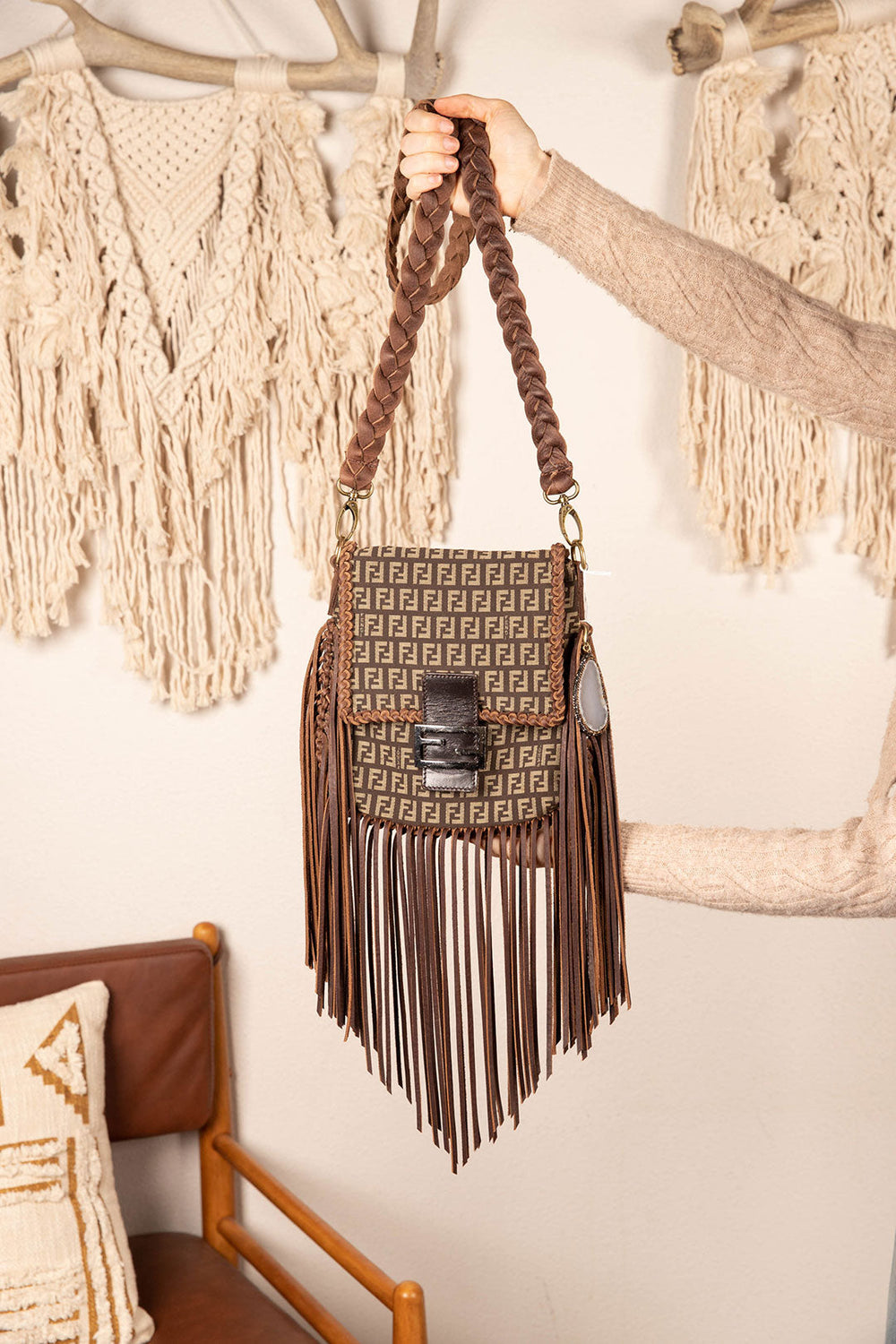 This is an authentic Louis Vuitton crossbody. This chic thin profile cross body bag allows you to carry all your essentials, measuring 7.8 x 8.6 x 1 inches. All bags are authenticated, lovingly cleaned, restored and enhanced with our beautiful leather fringe and braiding by hand here in the United States!