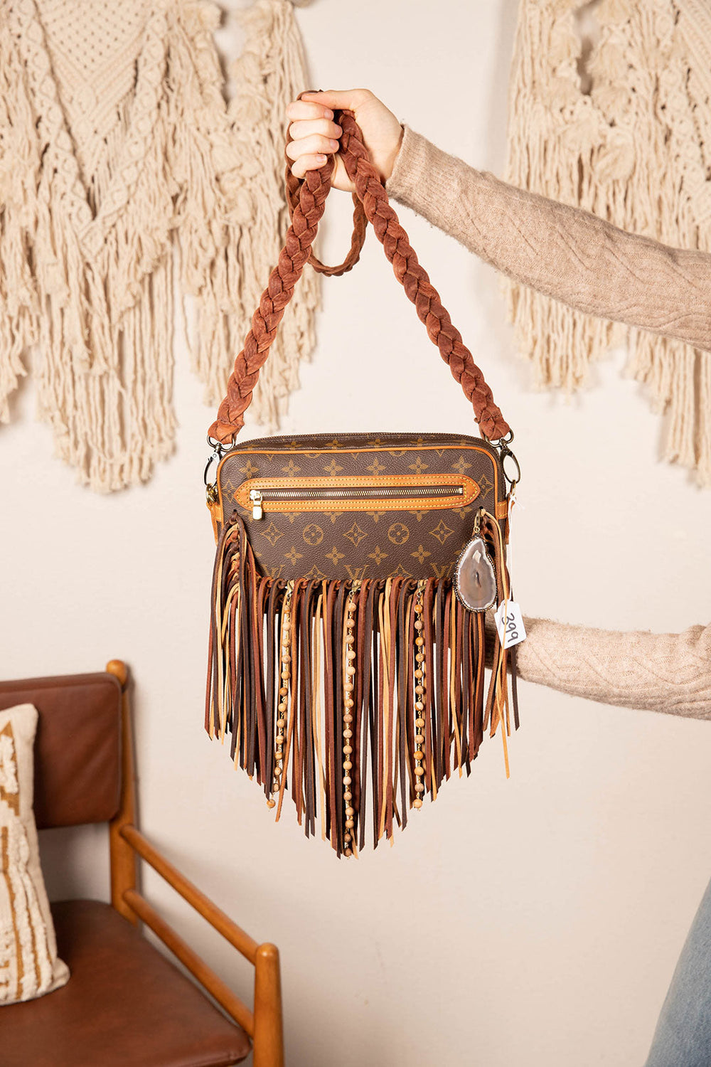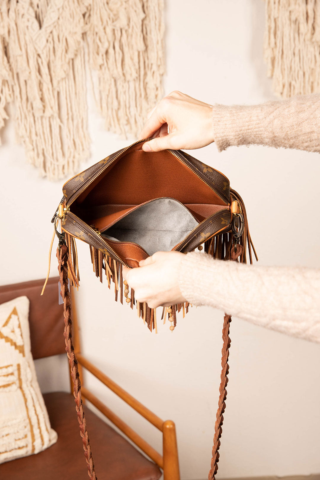 This is an authentic Louis Vuitton cross body bag, measuring 10 x 6.1 x 1.8 inches. It has a zippered main compartment and a zippered pocket on the front wall for easy cellphone access. Extremely spacious to carry all your essentials. All bags are authenticated, lovingly cleaned, restored and enhanced with our beautiful leather fringe and/or braiding by hand here in the United States!