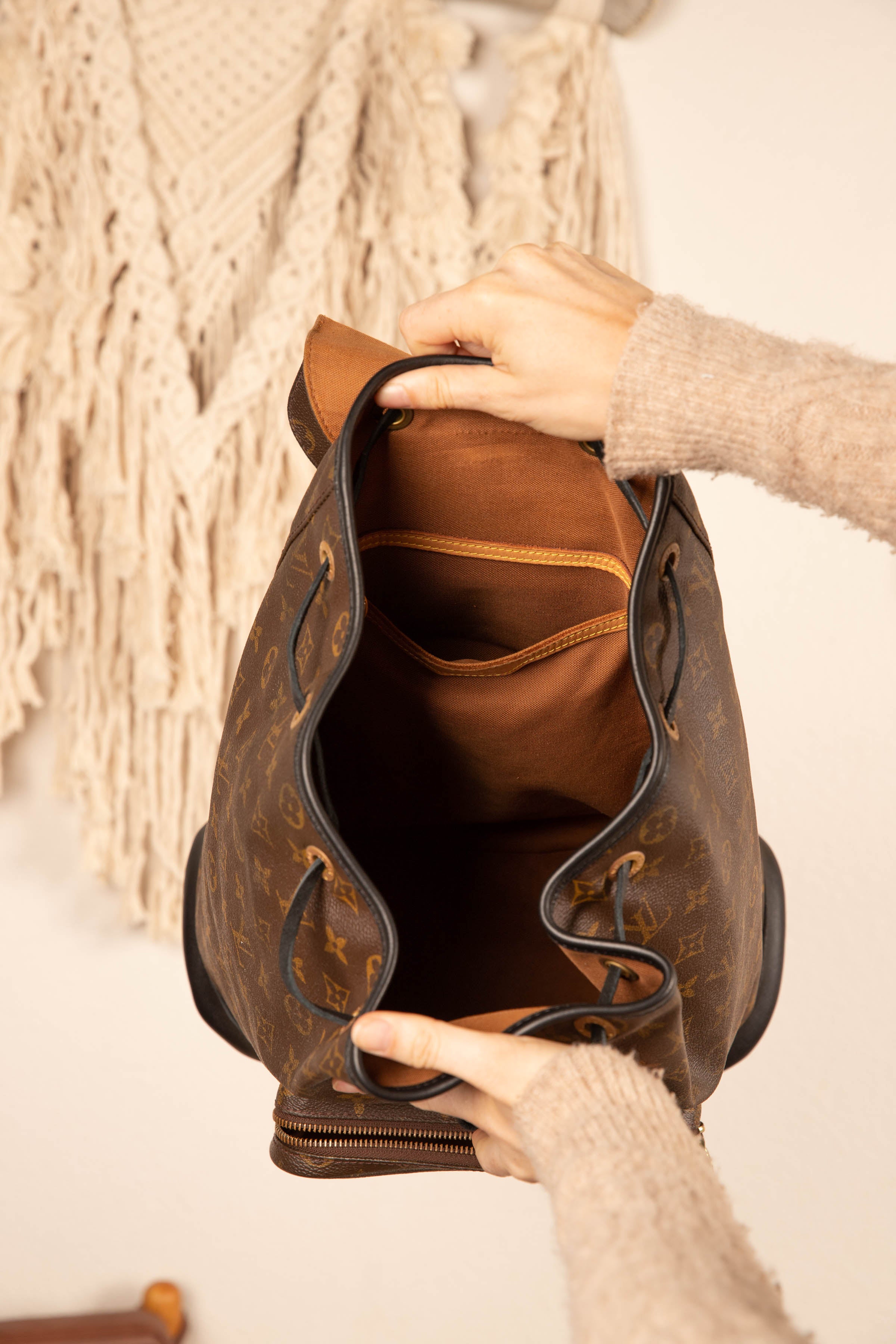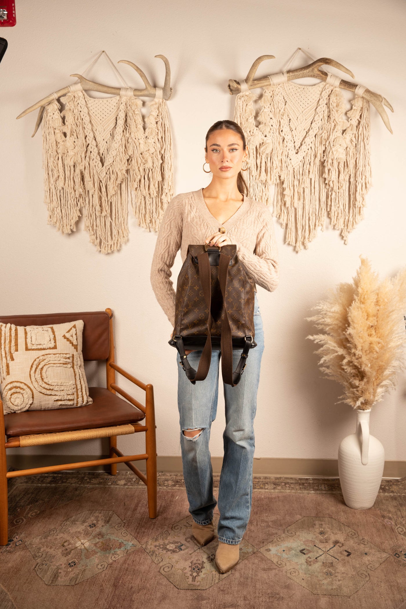 This is an authentic Louis Vuitton Backpack. Great for everyday use and for travel! Comes with an inside zippered pocket, external front pocket, adjustable backpack and measures at 14 x 18 x 4.75inches. All the trim and bottom of the back was replaced with premium leather so you are practically getting a brand-new bag. All bags are authenticated, lovingly cleaned, restored and enhanced with our beautiful leather fringe and braiding by hand here in the United States!
