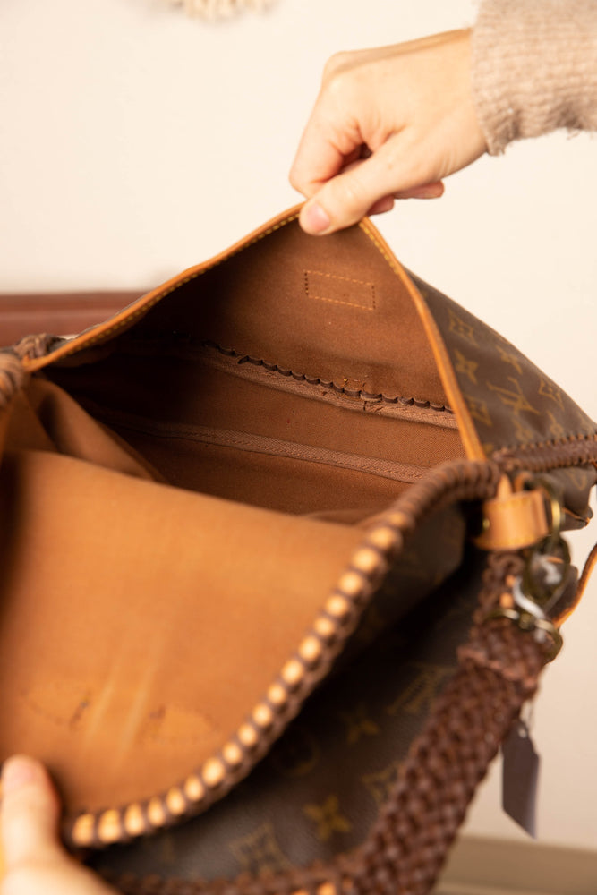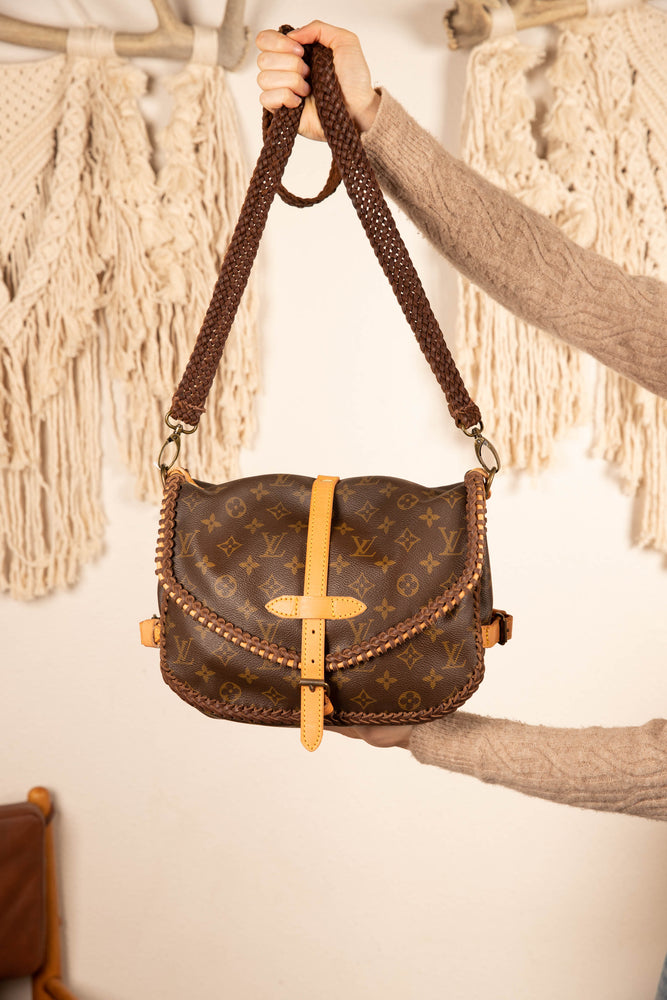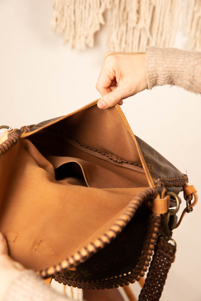 This is an authentic Louis Vuitton cross body bag. It is a classic saddle style 2 compartment bag design, measuring 11 x 9.5 x 4 inches Cross body bag. Both compartments are just the right size for on the go daily/work/school essentials. All bags are authenticated, lovingly cleaned, restored and enhanced with our beautiful leather fringe and/or braiding by hand here in the United States!