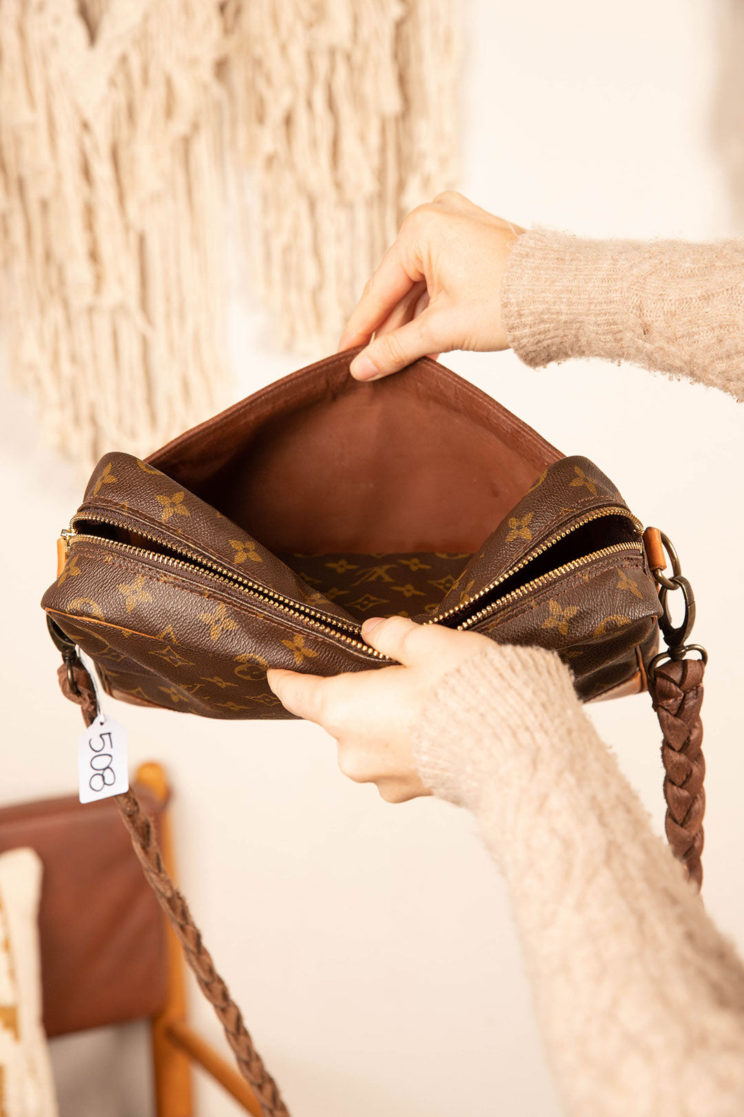 This is an authentic Louis Vuitton cross body bag, measuring 11.81 x 7.48 x 3.15 inches. It has a zippered main compartment and a zippered front wall pocket for your cellphone. The inside has a zippered pocket to hold all your essentials. All bags are authenticated, lovingly cleaned, restored and enhanced with our beautiful leather fringe and/or braiding by hand here in the United States!