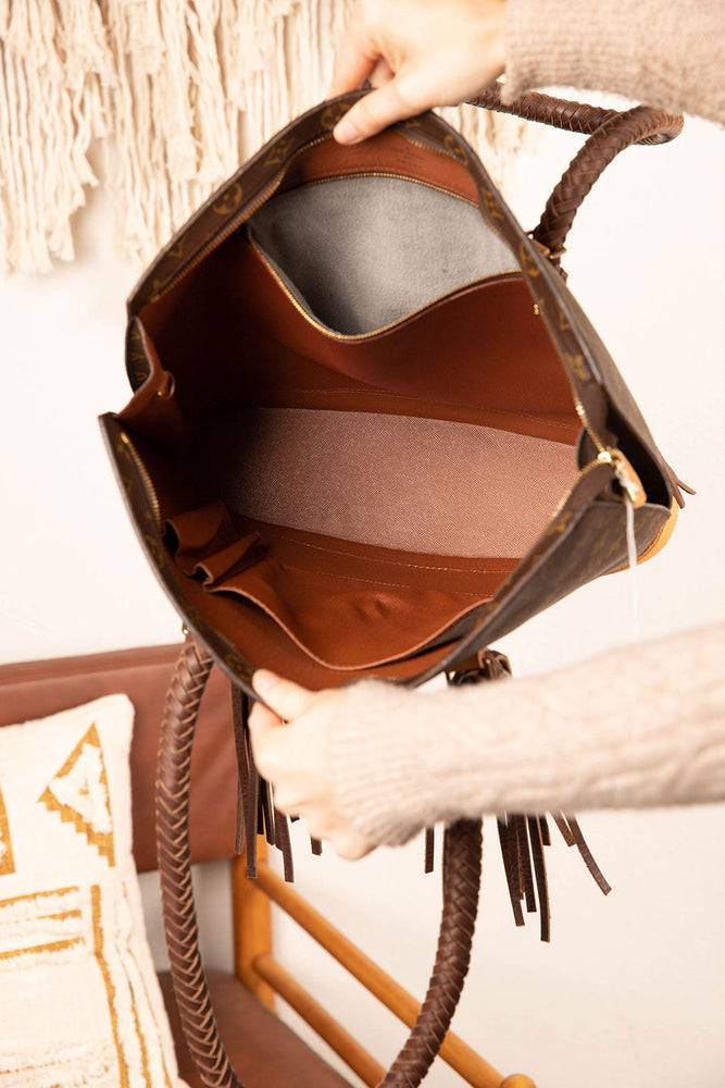 This is an authentic Iconic Louis Vuitton bag. This is a great everyday bag and also works well for the office. This is a big bag but not bulky, measuring at 16 x 12 x 4.3 and will fit a full-size laptop and all your essentials. The interior of the bag is leather with pockets. All bags are authenticated, lovingly cleaned, restored and enhanced with our beautiful premium braided leather straps here in the United States!