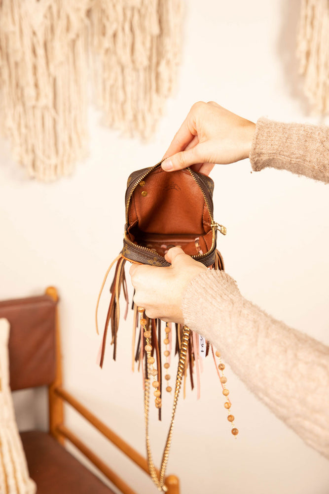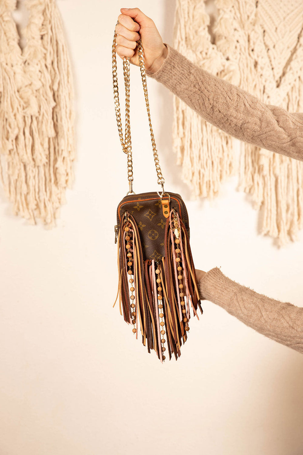 This is an authentic Louis Vuitton cross body bag, measuring approx. 2.85 x 4.3 x 1.5 inches. Large bag and will hold all essentials plus more. Zippered main compartment. All bags are authenticated, lovingly cleaned, restored and enhanced with our beautiful leather fringe and/or braiding by hand here in the United States!