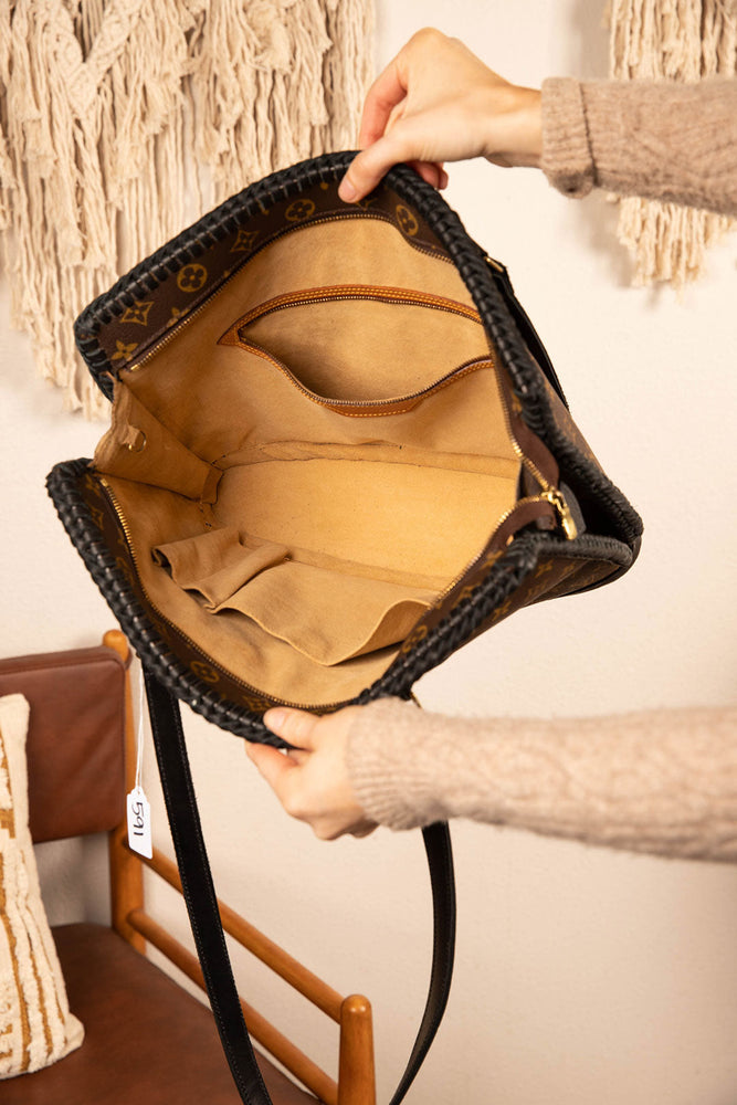 This is an authentic Iconic Louis Vuitton bag. This is a great everyday bag and also works well for the office. This is a big bag but not bulky, measuring 16 x 12 x 4.3 and will fit a full-size laptop and all your essentials. The interior of the bag is suede/cloth with pockets. All bags are authenticated, lovingly cleaned, restored and enhanced with our beautiful premium leather straps here in the United States!