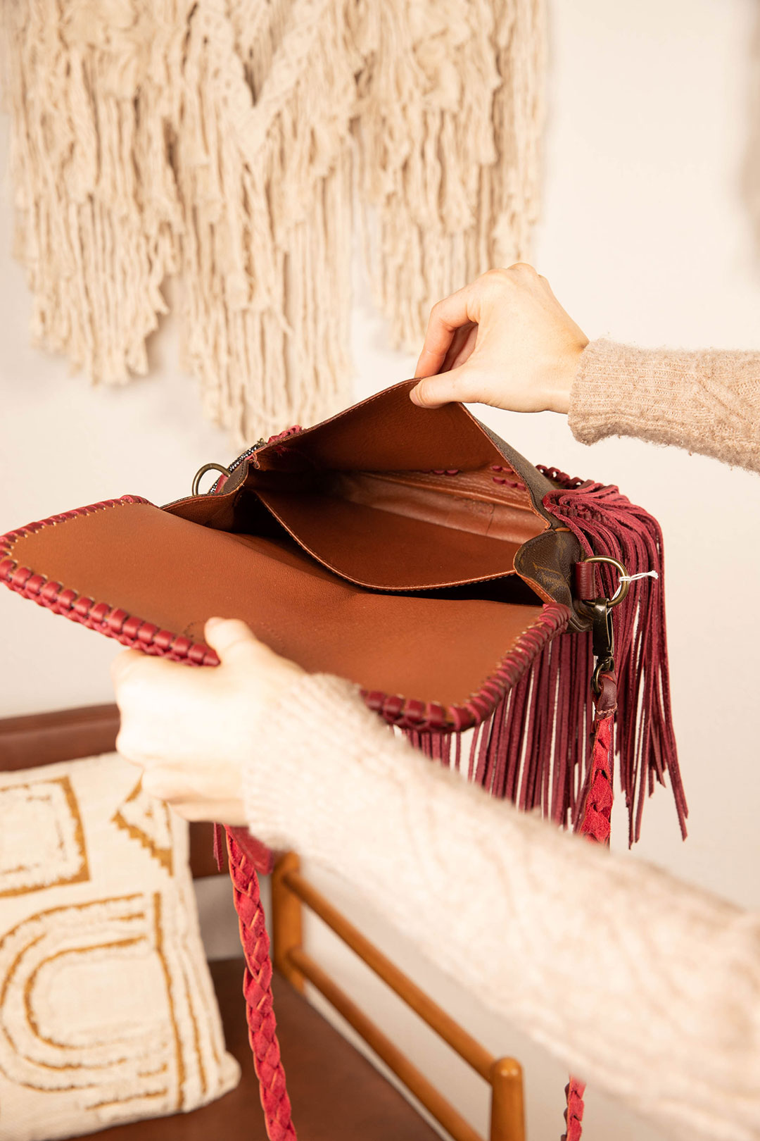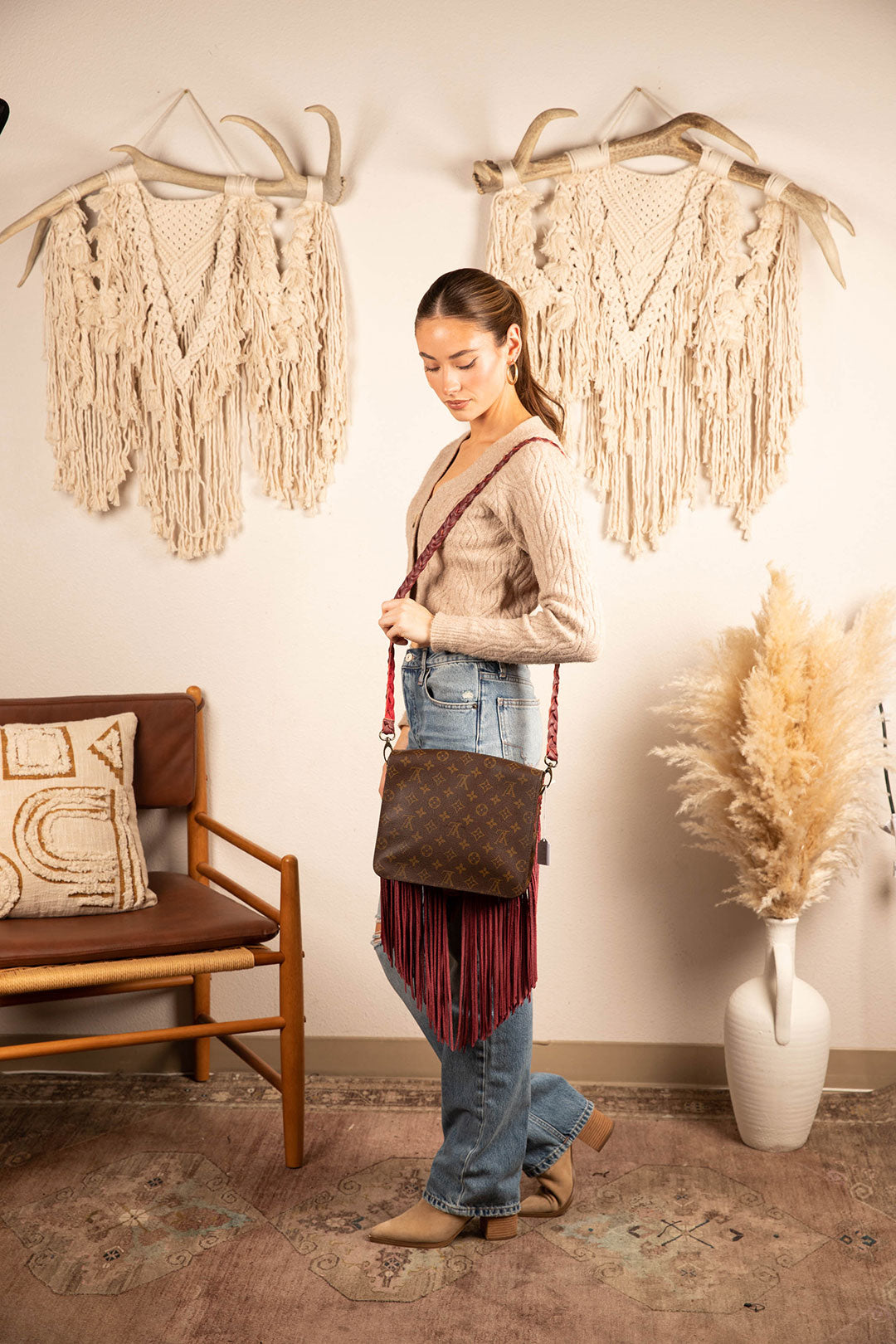 This is an authentic Iconic Louis Vuitton bag measuring 10 x 8 x 3 inches structured cross body bag with front buckle closure. It is distinctly shaped with a spacious inside to carry all basic essentials. All bags are authenticated, lovingly cleaned, restored and enhanced with our beautiful leather fringe and/or braiding by hand here in the United States!