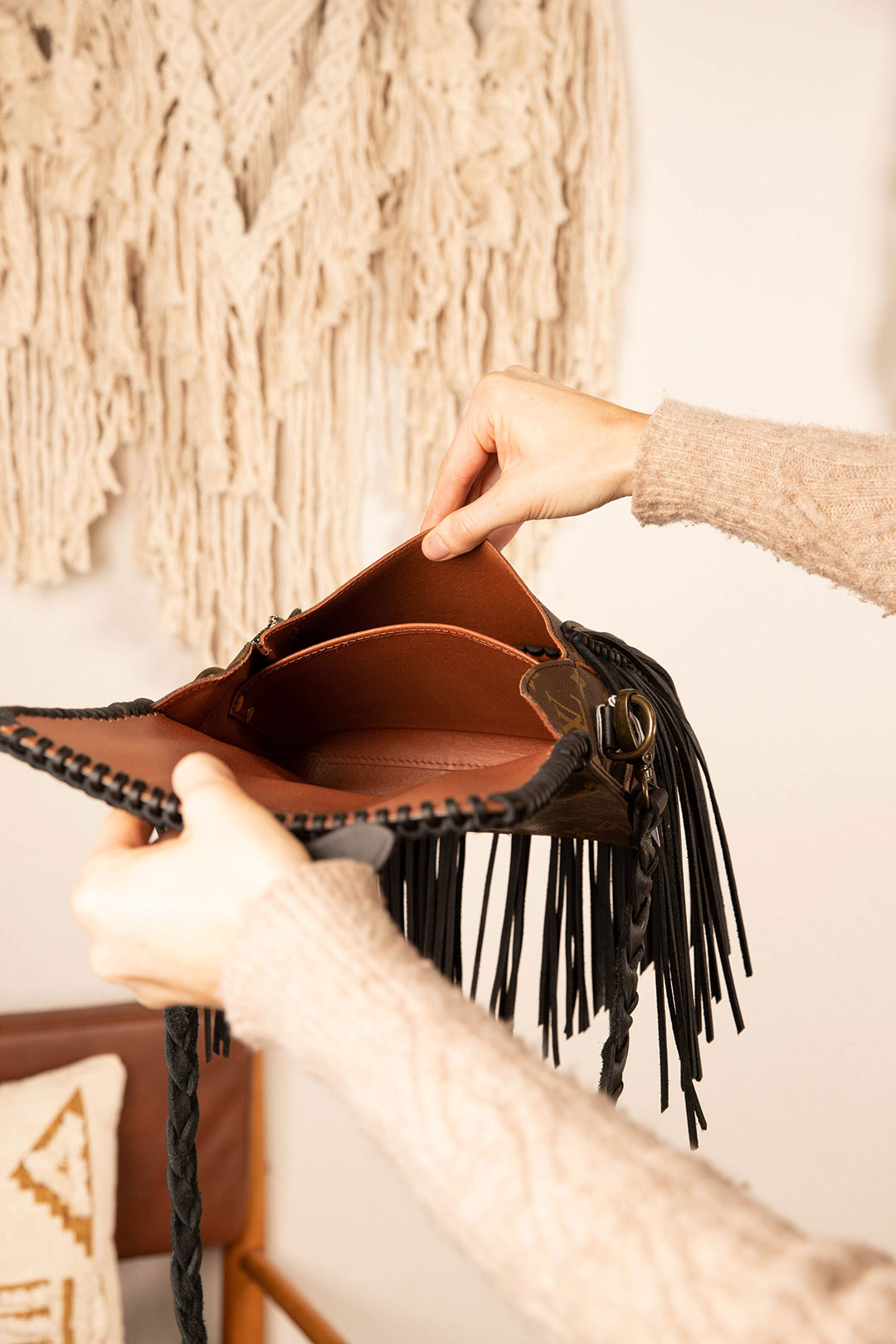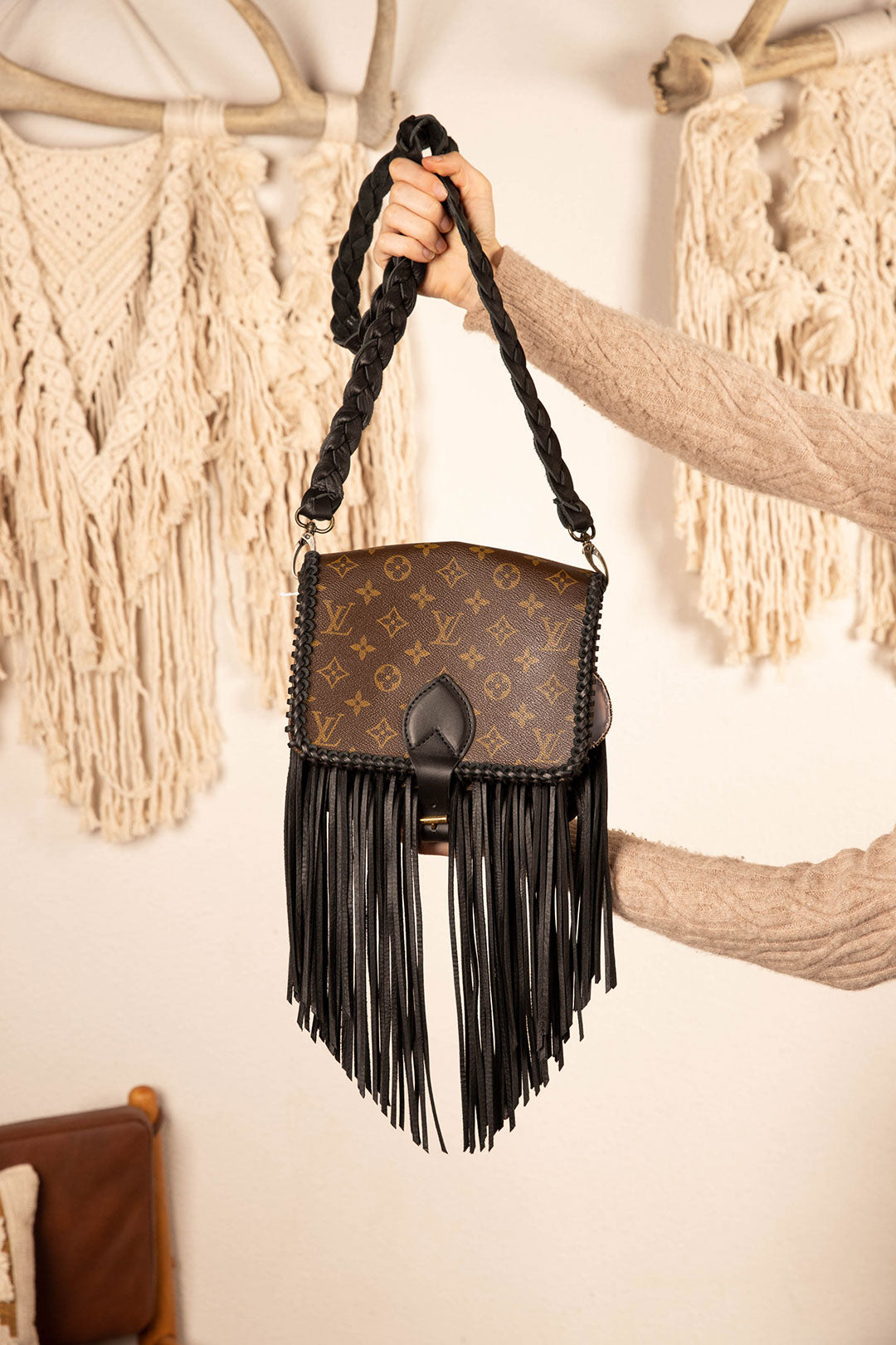 This is an authentic Iconic Louis Vuitton bag, measuring 6 x 6 x 2 inches structured cross body bag with front buckle closure. It is distinctly shaped with a spacious inside to carry all basic essentials. All bags are authenticated, lovingly cleaned, restored and enhanced with our beautiful leather fringe and/or braiding by hand here in the United States!