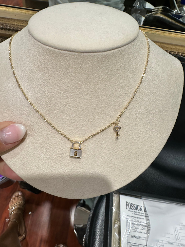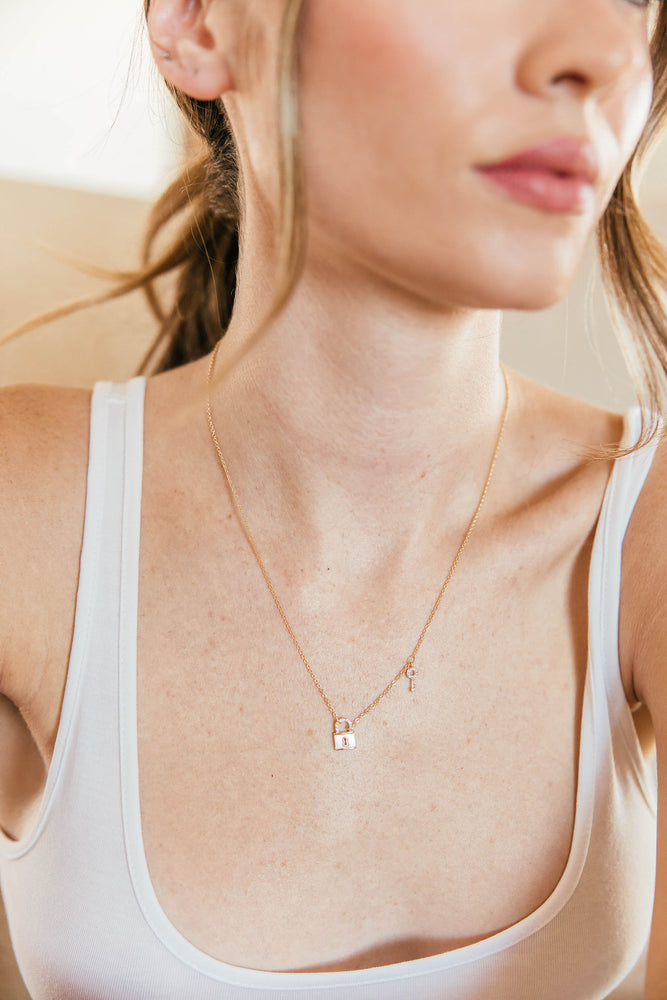 Our Ocean's Key Necklace has a beautiful touch of elegancy. The dainty chain is adorned with a mother of pearl lock pendant and a gold key, creating a cute and eye-catching piece that will make you stand out. Keep your style on lock with this adorably chic necklace.