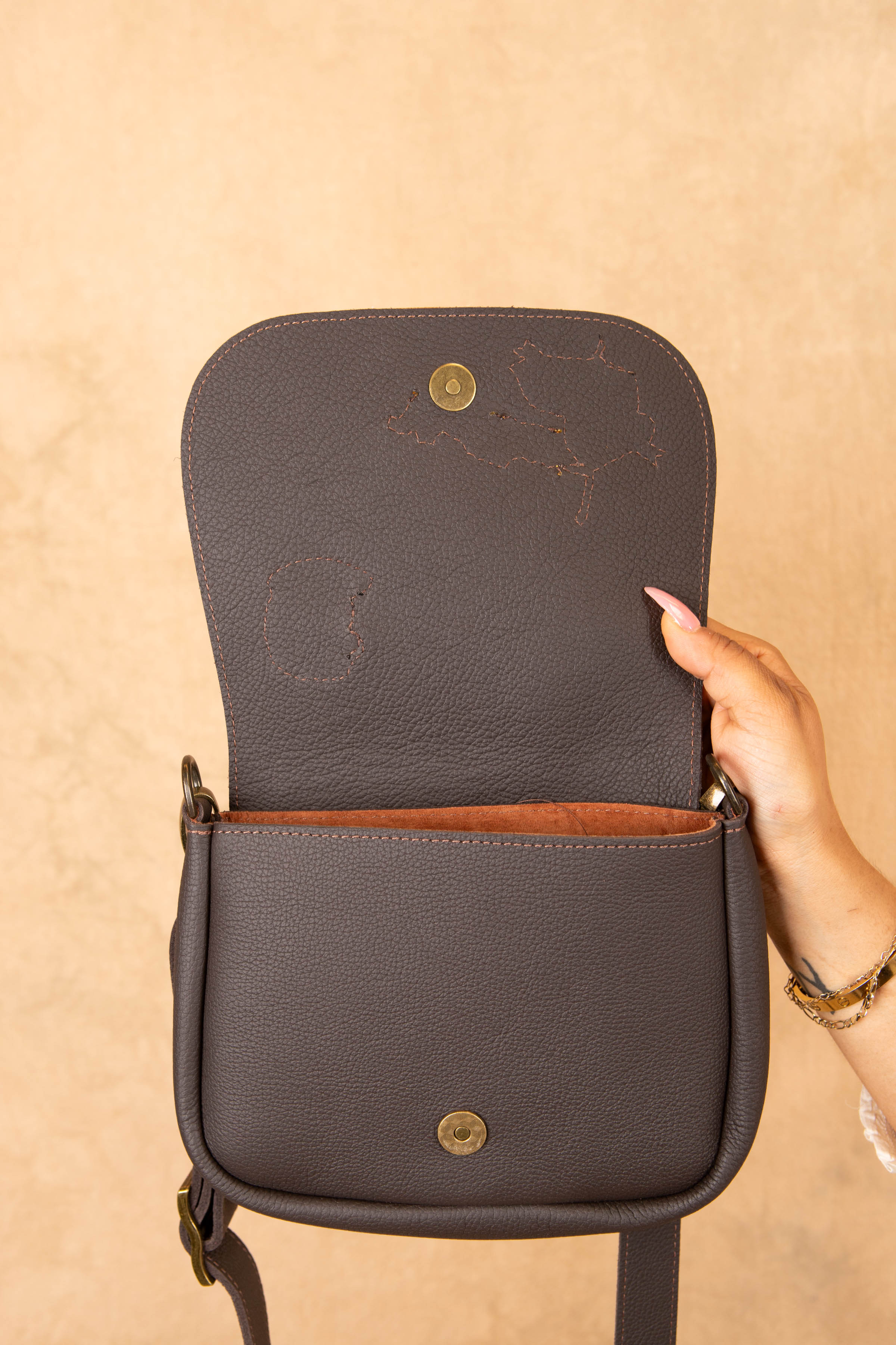 This bag is made in house. The front flap of the Odyssey is made out of 100% Authentic upcycled Louis Vuitton material. The rest of the bag is not associated with Louis Vuitton. The body of the bag is made of cowhide leather. Due to the nature of the Bag being made in house, they are all one of a kind and the placement of the LV might be slightly different.