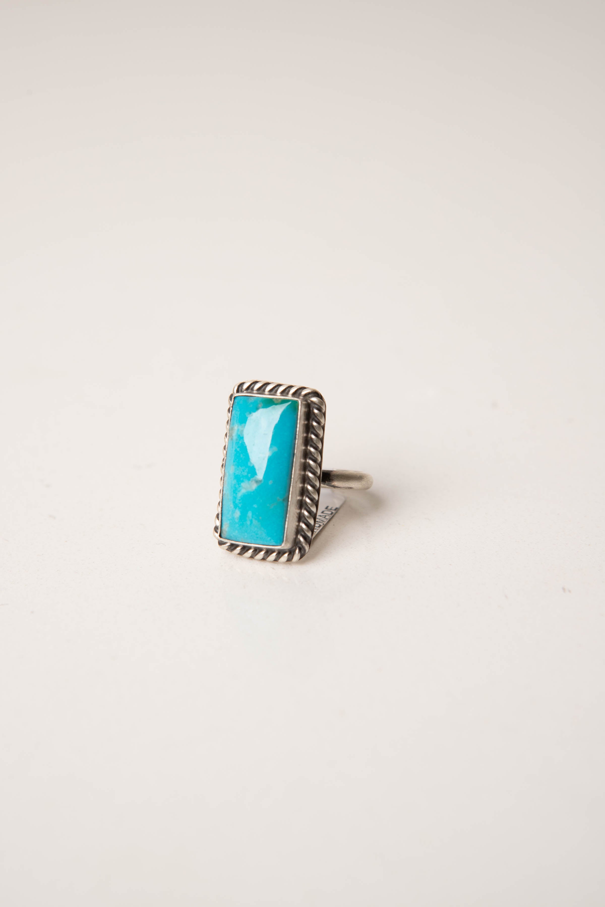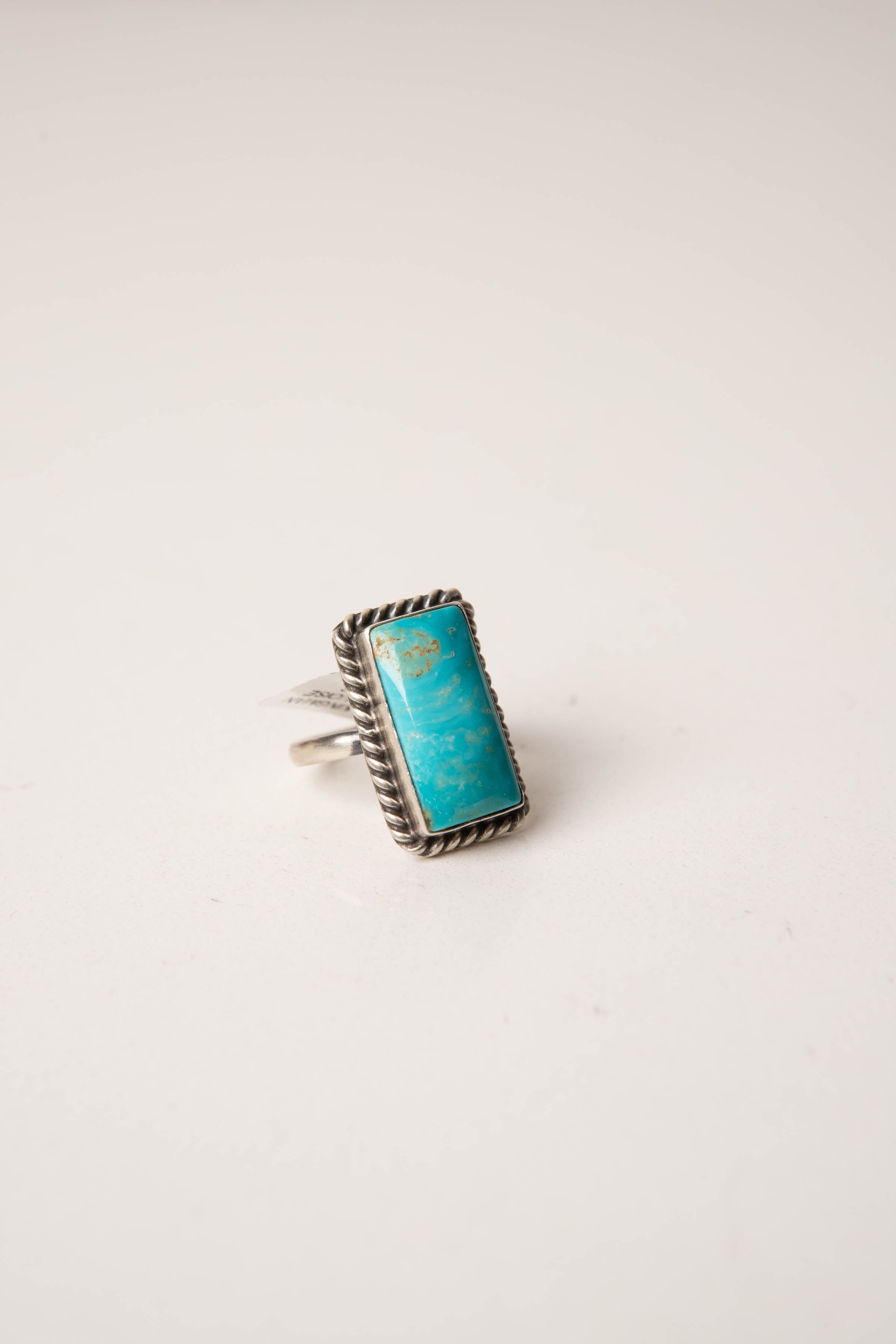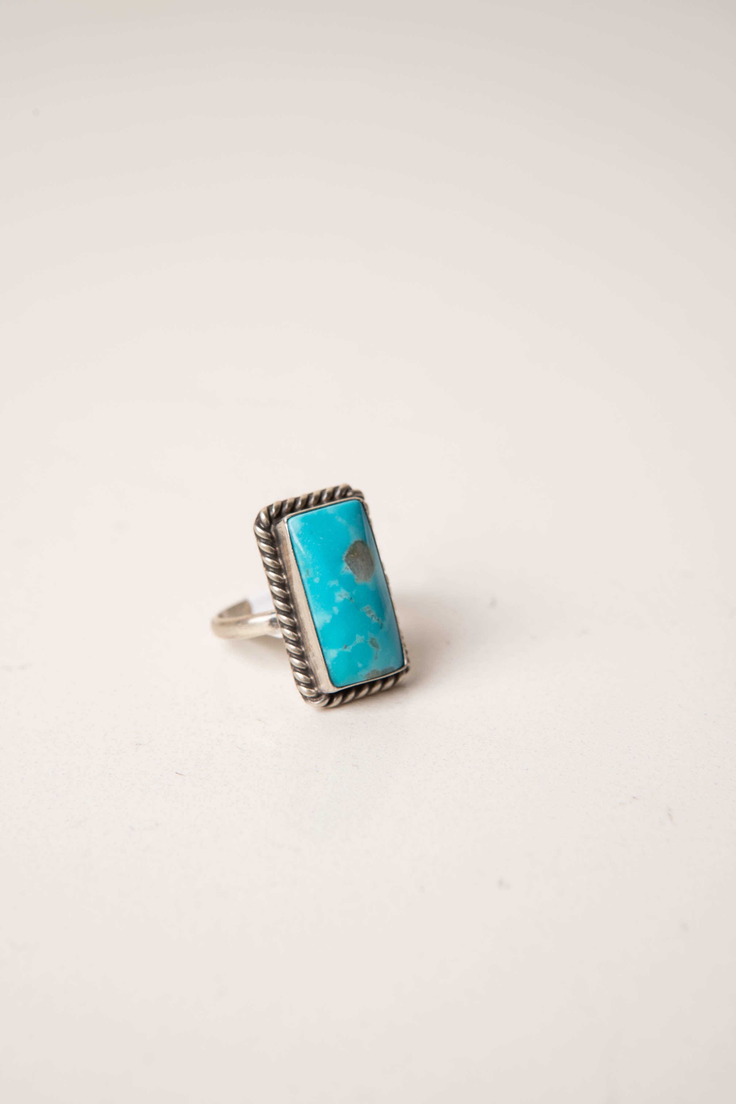 Handmade Navajo sterling silver adjustable ring with Kingman Turquoise stone.